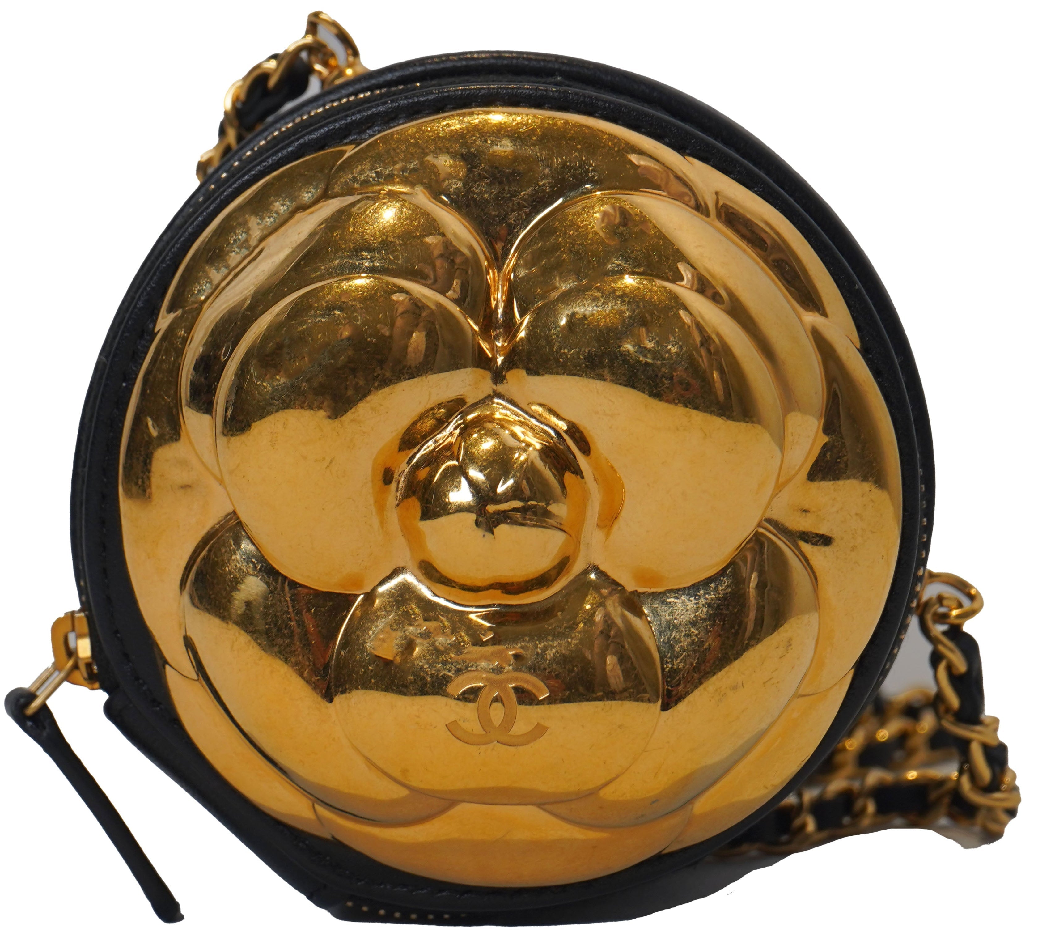 Chanel - Metallic Lambskin Quilted Camelia Clutch Gold Black