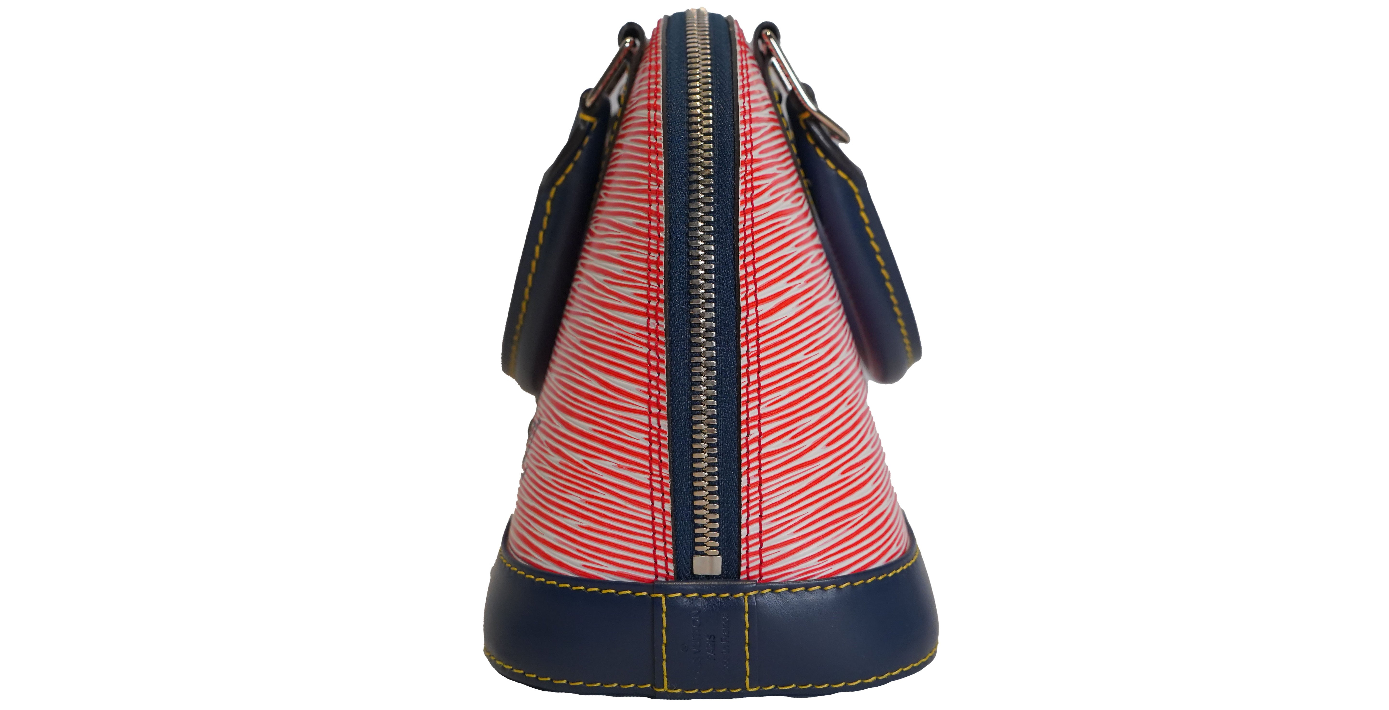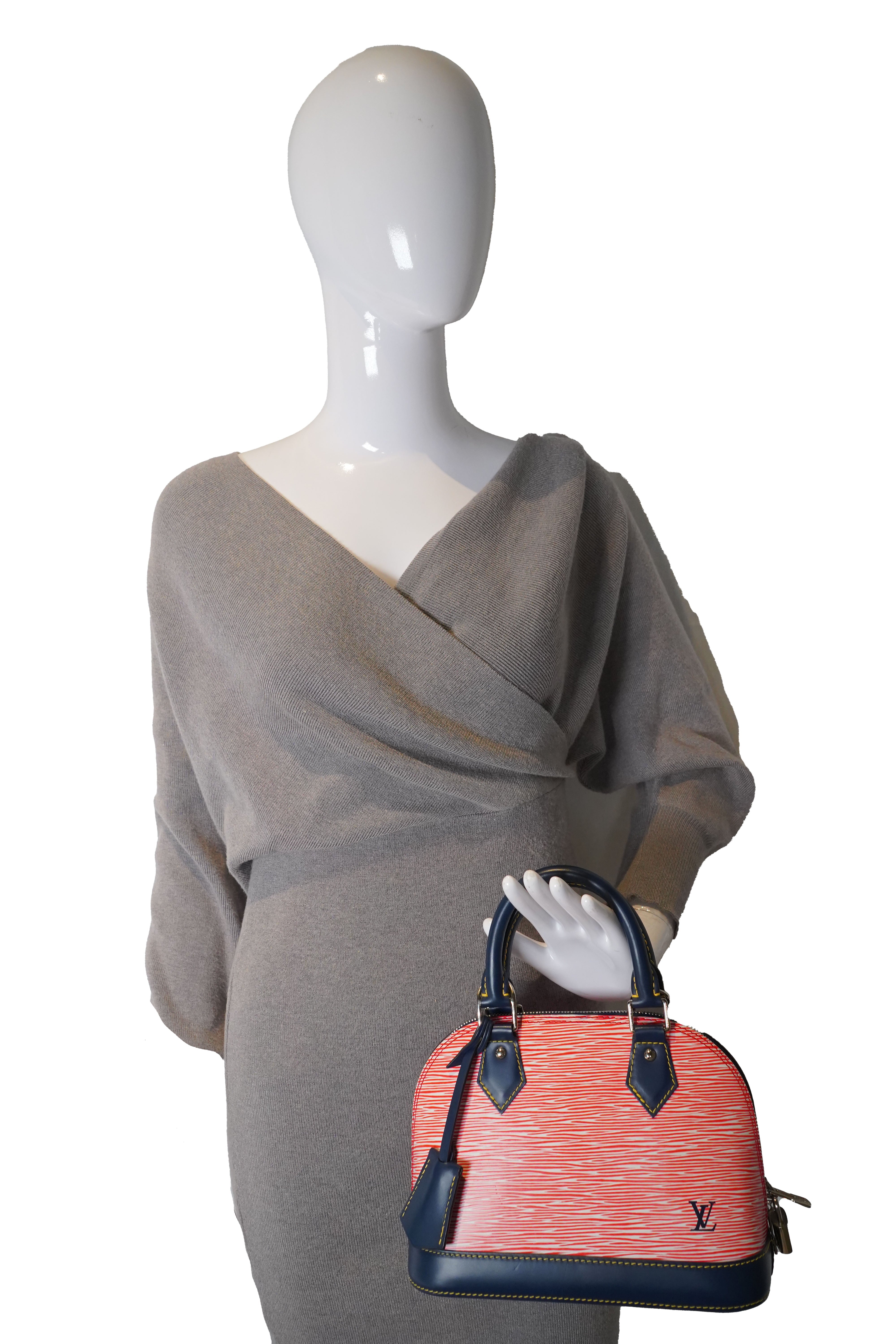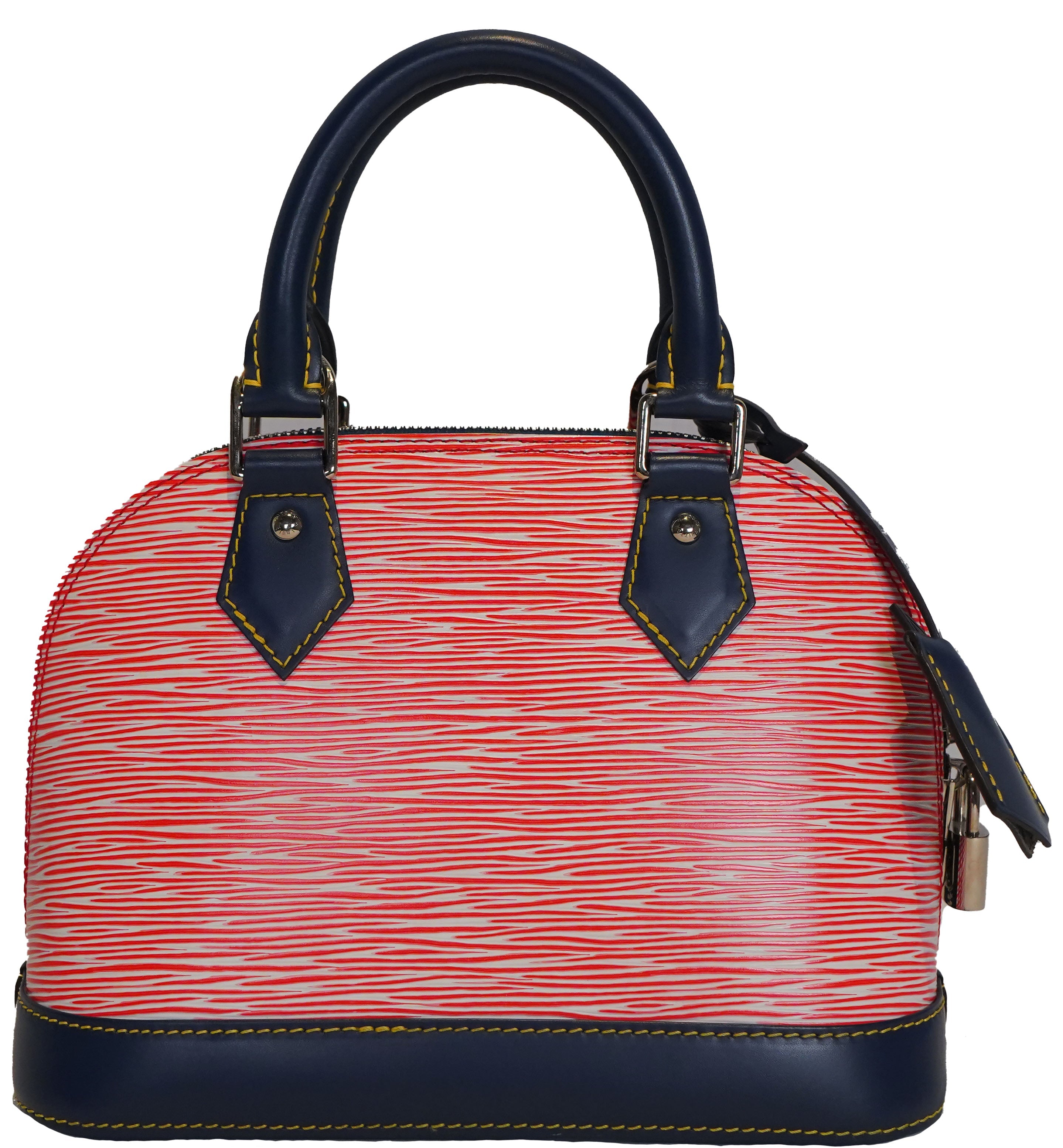 The Louis Vuitton Alma BB is a timeless silhouette reimagined in bold red Epi leather with striking horizontal textured lines. Its structured dome shape, accented with contrasting navy leather trim and top handles, exudes classic elegance while offering a pop of modern style. Perfect for both day and evening wear, the Alma BB is compact yet spacious enough for daily essentials. Carry it by hand, on the arm, or wear it crossbody with the detachable strap for versatile styling.