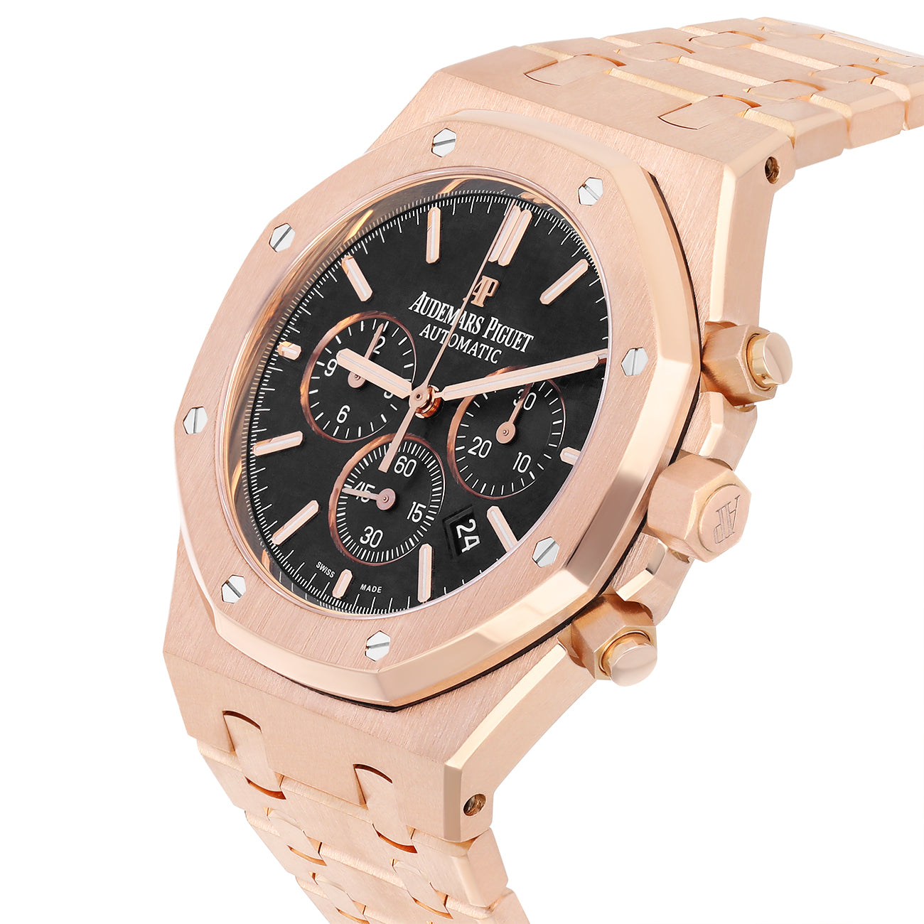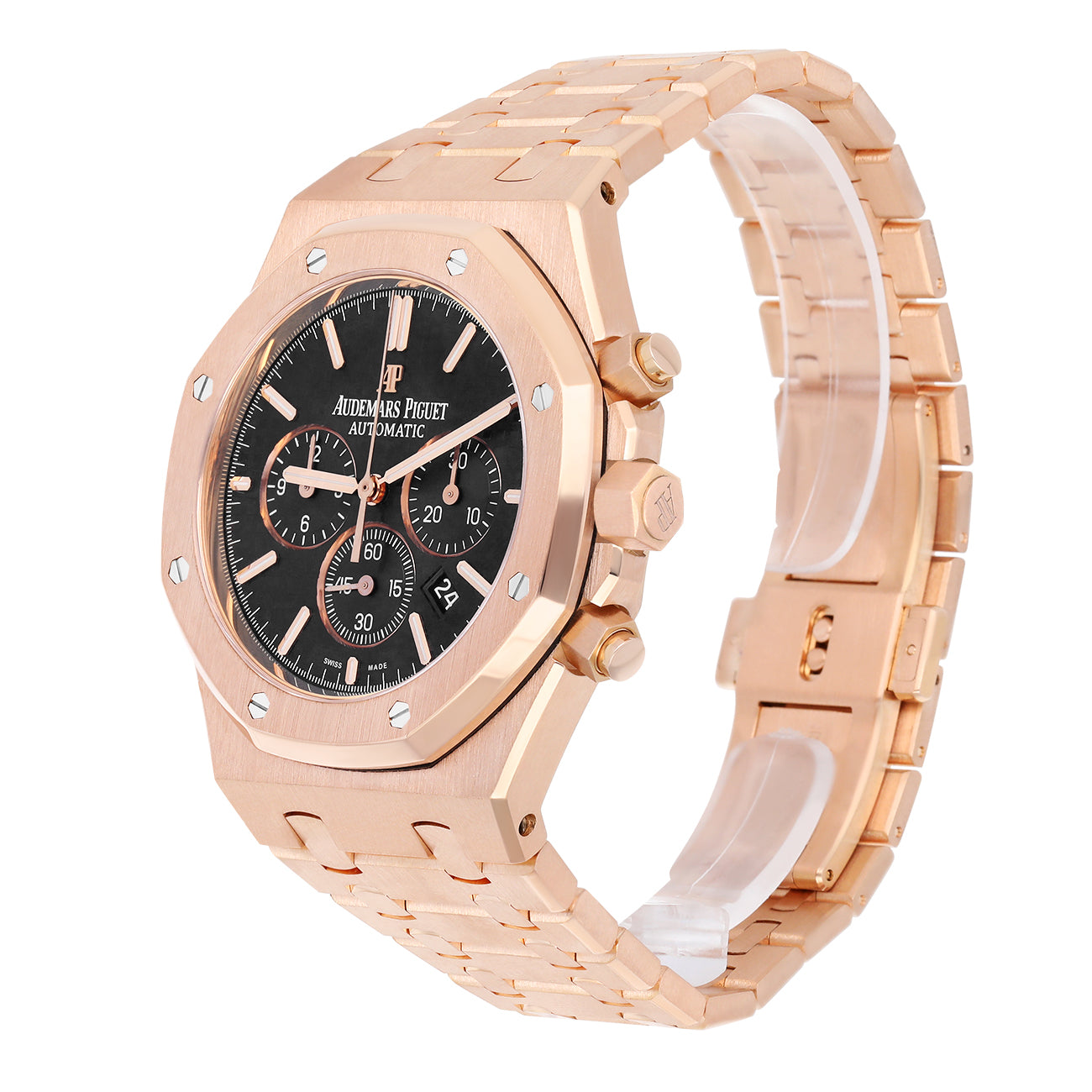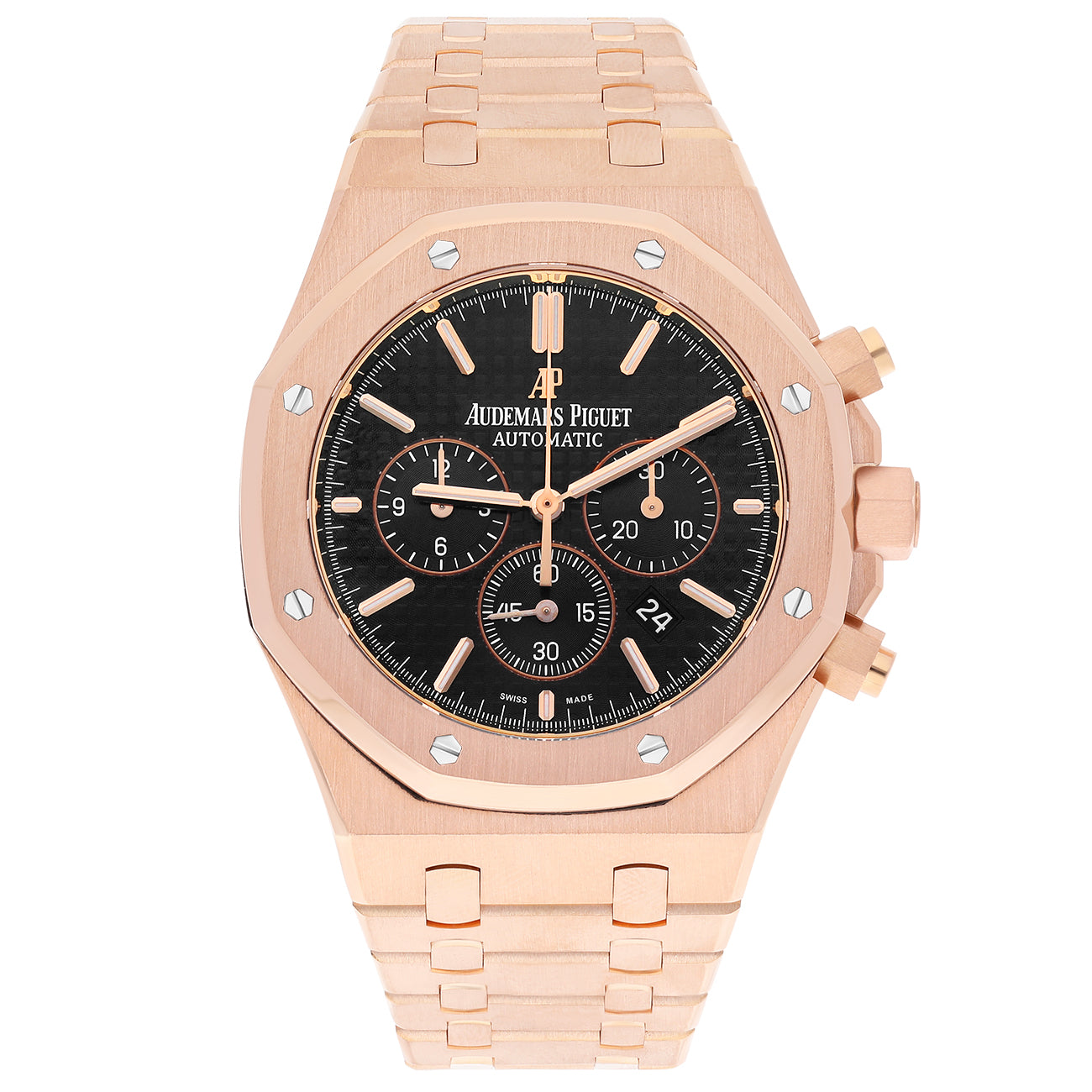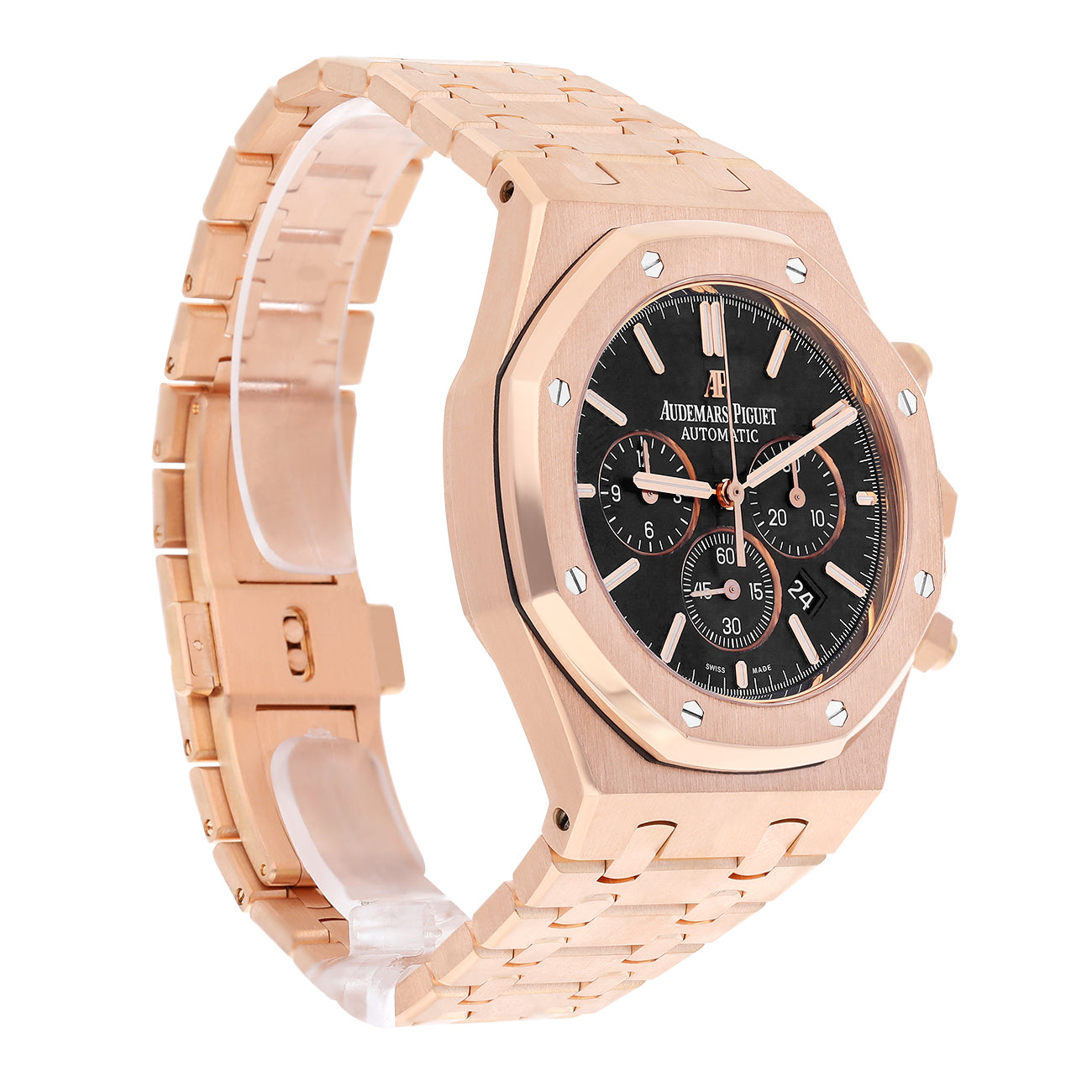 Audemars Piguet Royal Oak 26320OR.OO.1220OR.01 Black Chronograph Dial Rose Gold Black Mens Watch