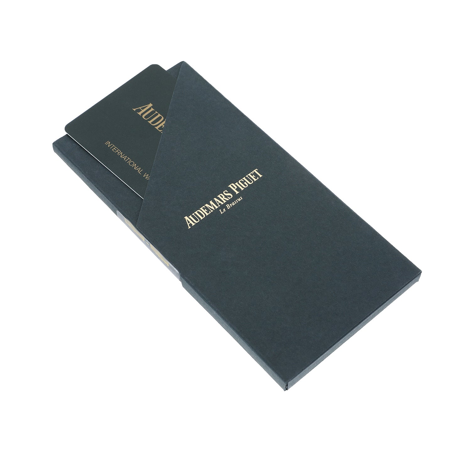Screw down crown. Solid case back. Case size: 34 mm, case thickness: 8.8 mm. Deployment clasp. Water resistant at 50 meters / 165 feet. Functions: date, hour, minute, second. Royal Oak Series. Luxury watch style. Watch label: Swiss Made.