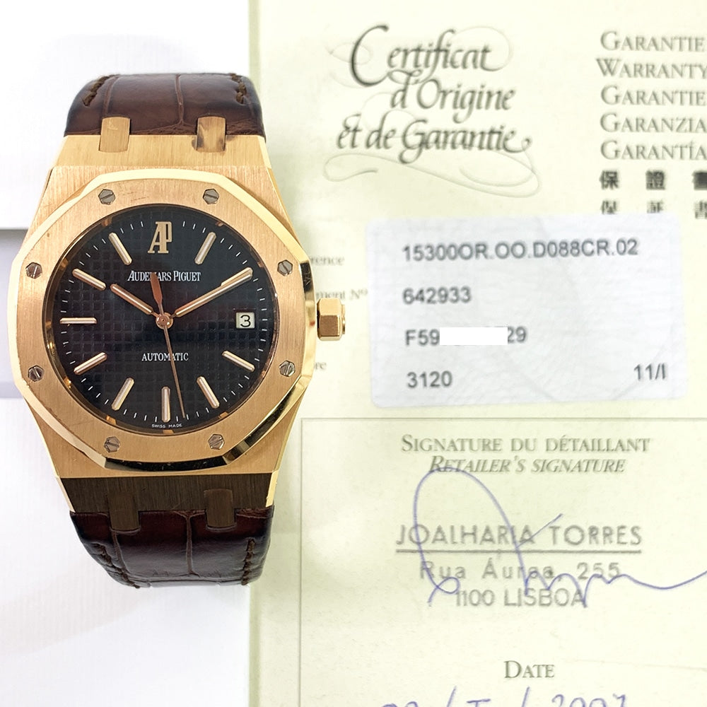 Audemars Piguet Royal Oak Black Dial 39mm 15300OR.OO.D088CR.02 Rose Gold With Brown Leather Watch