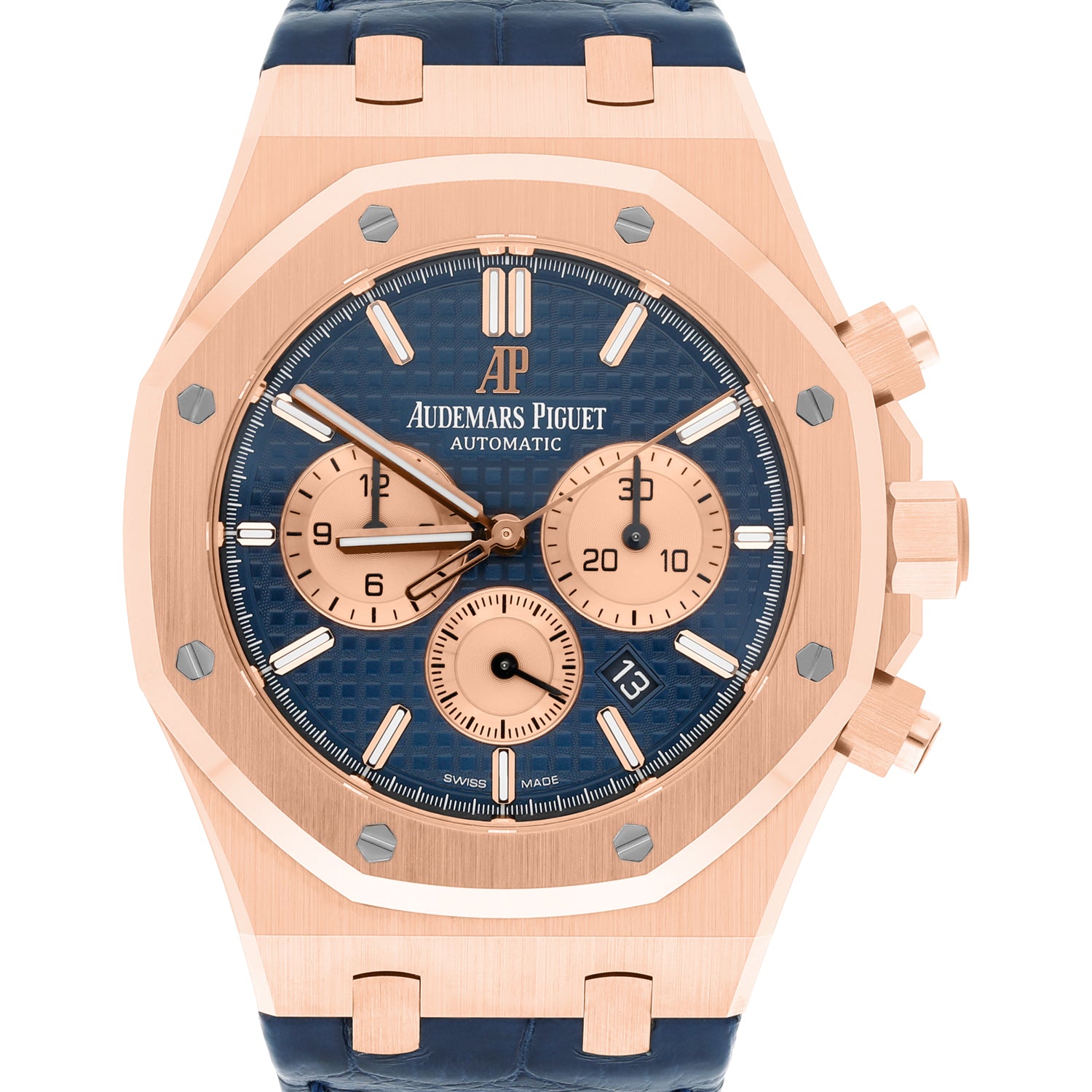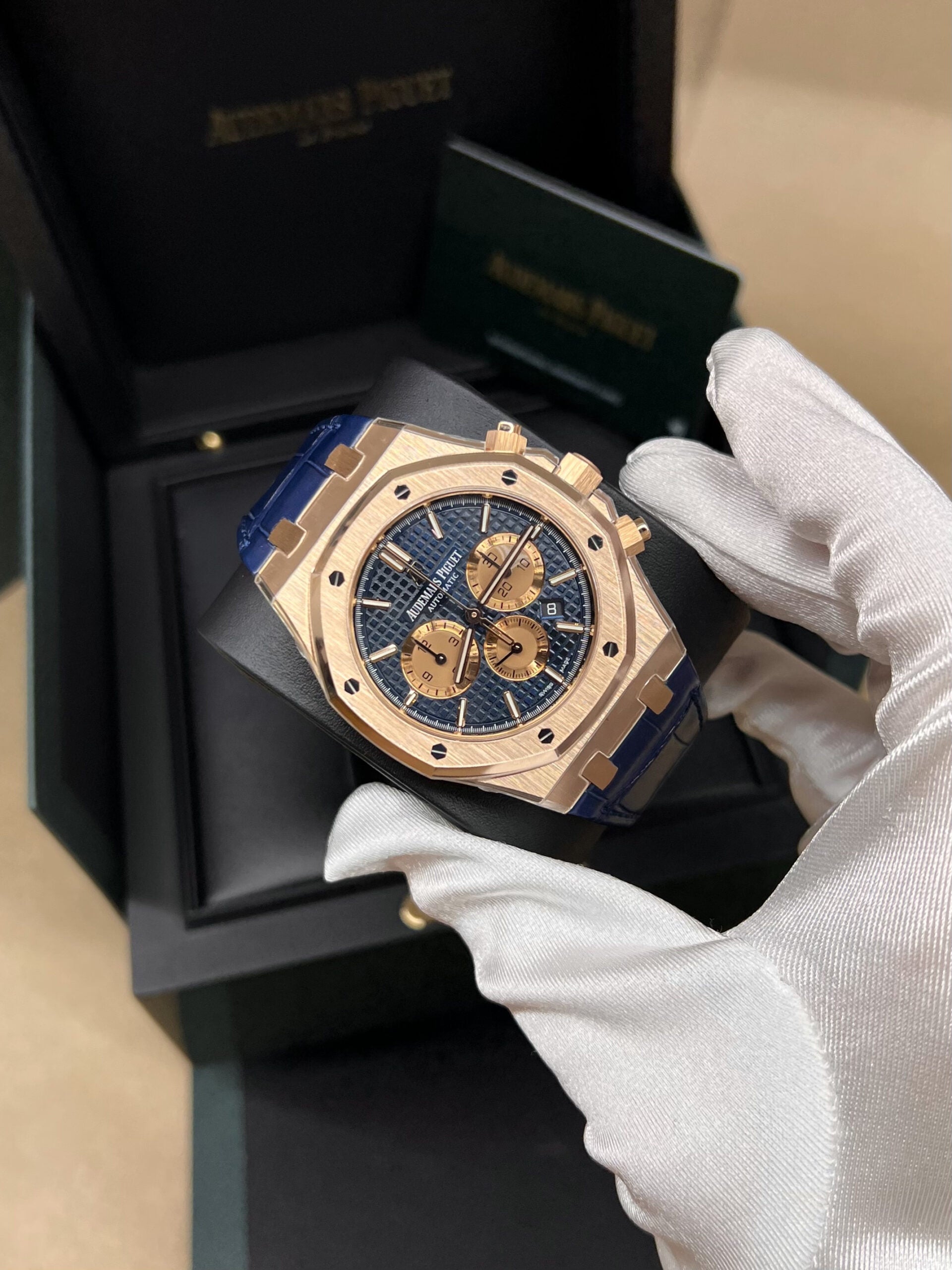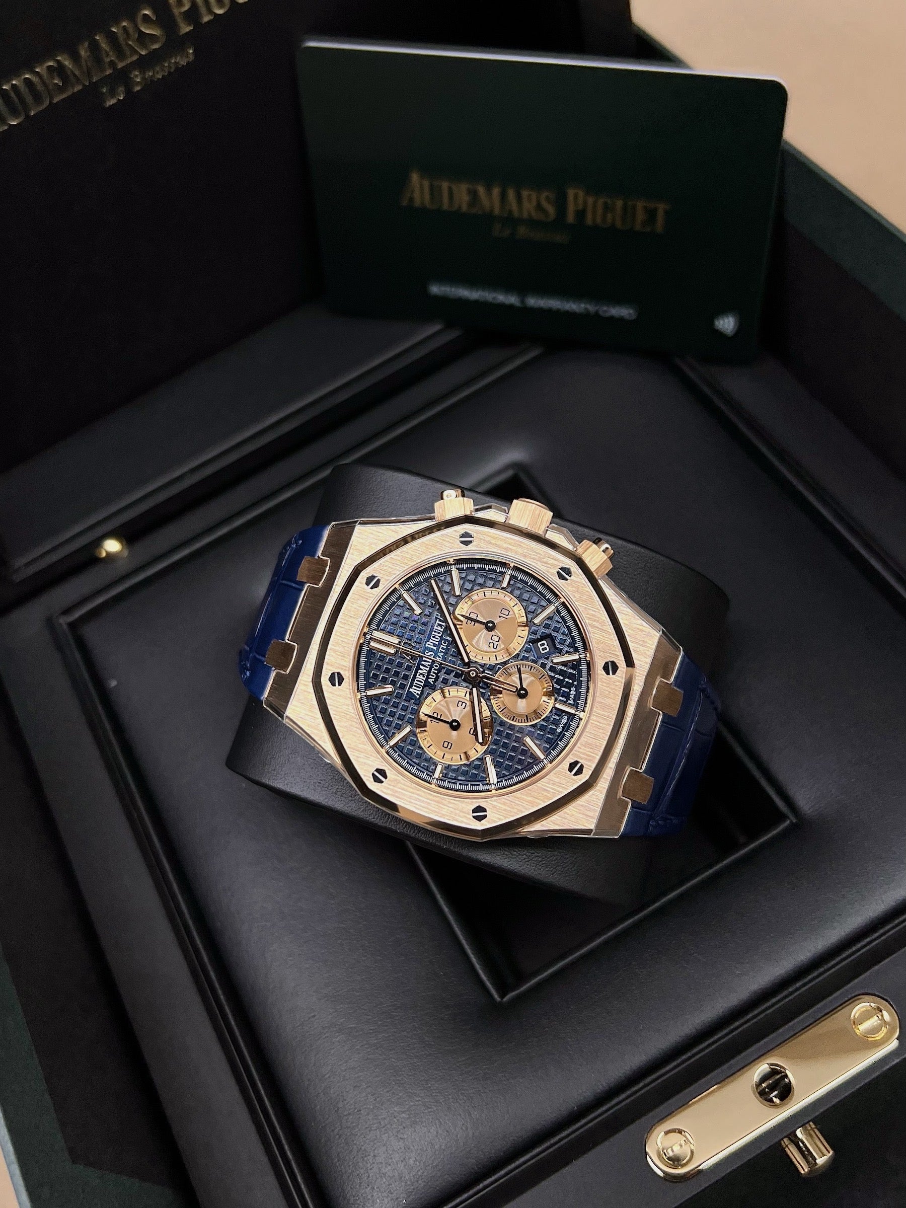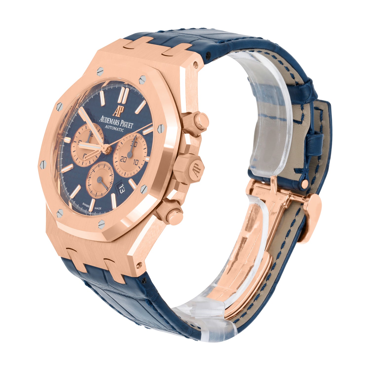 Audemars Piguet Royal Oak Chronograph 26331OR.OO.D315CR.01 Blue Dial Blue Leather Rose Gold Watch