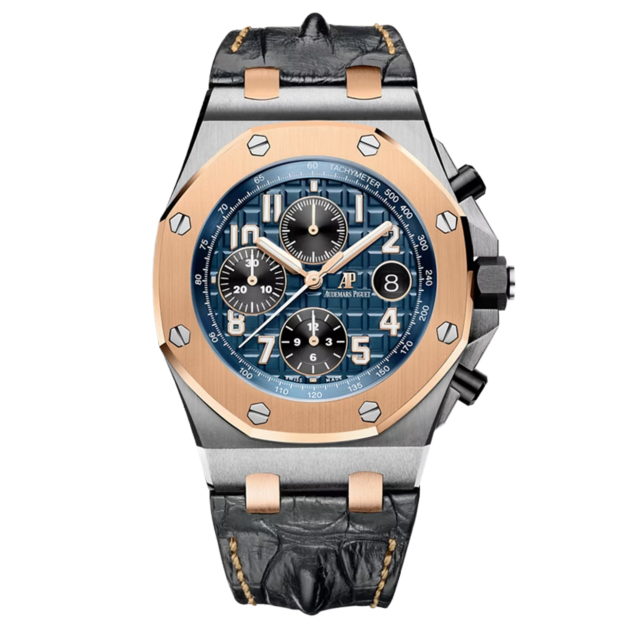Audemars Piguet Royal Oak Offshore 26471SR.OO.D101CR.01 Blue Dial Black Crocodile Straps Rose Gold Watch