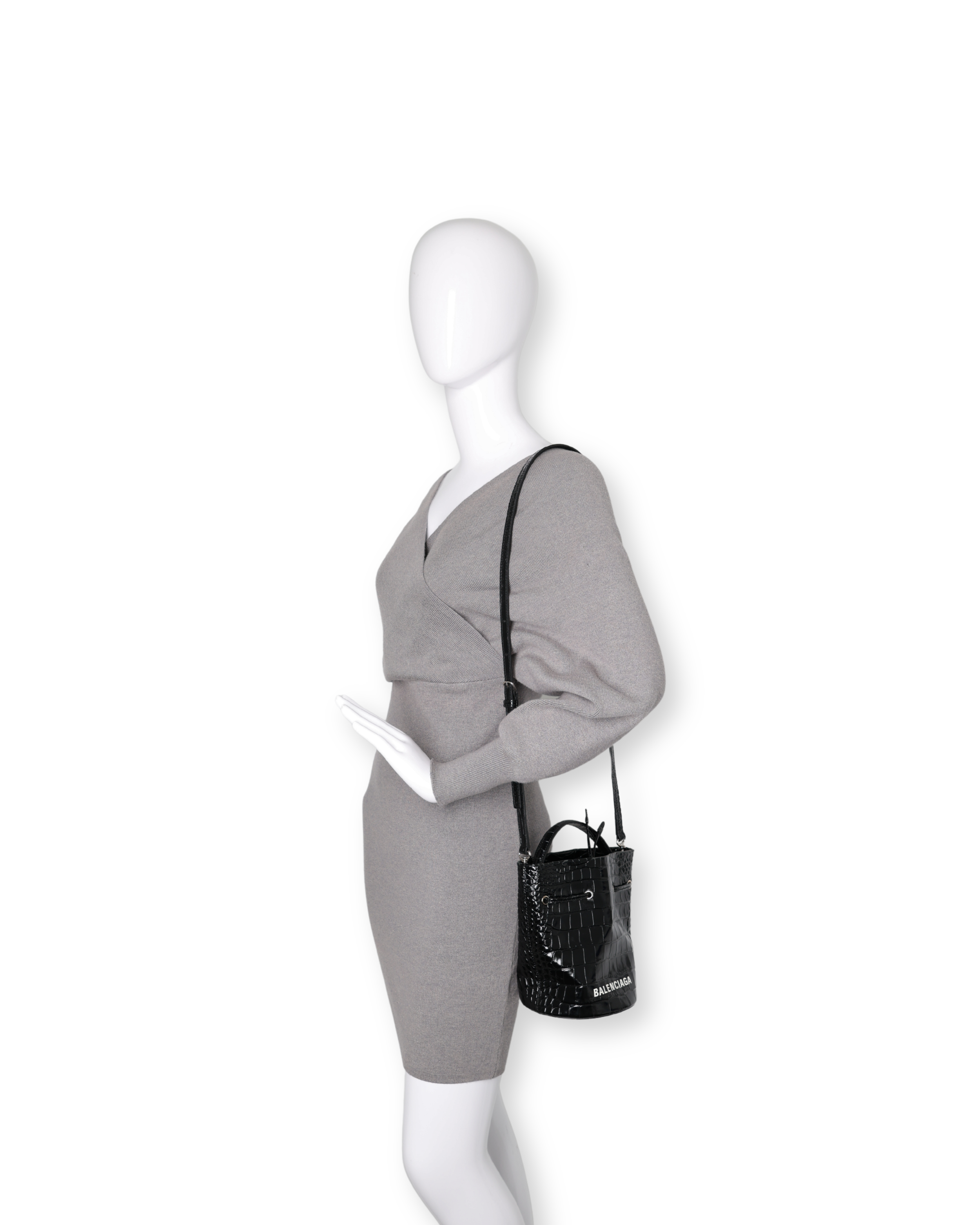 Balenciaga - Calfskin Logo Crocodile Embossed XS Everyday Bucket Bag (Pre-Owned)