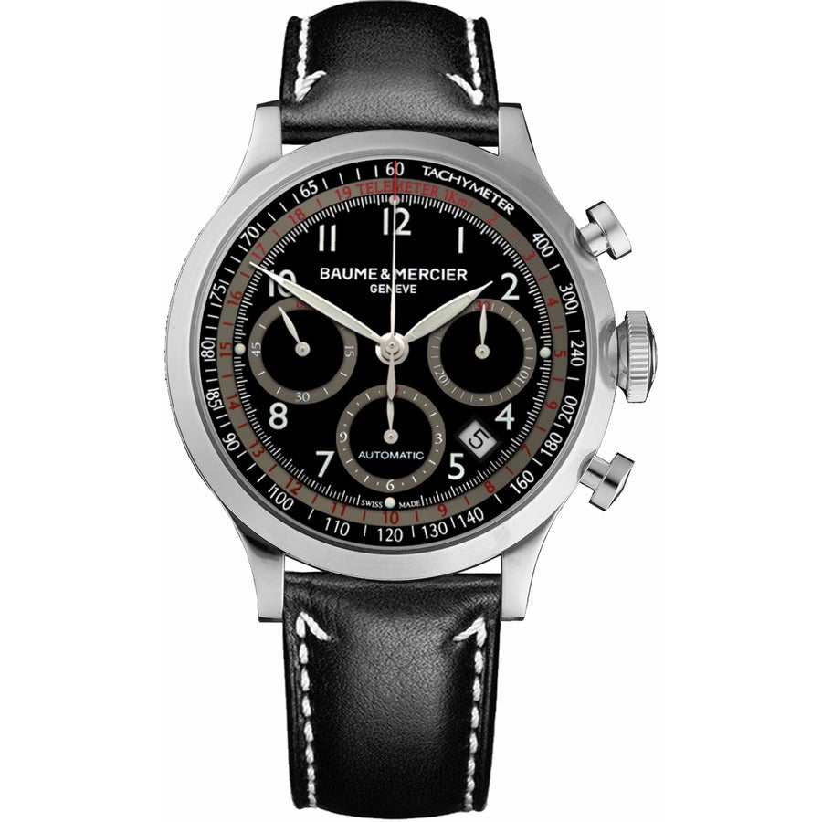 Baume and Mercier Capeland 10001 Stainless Steel With Black Leather Watch Black Dial 2024