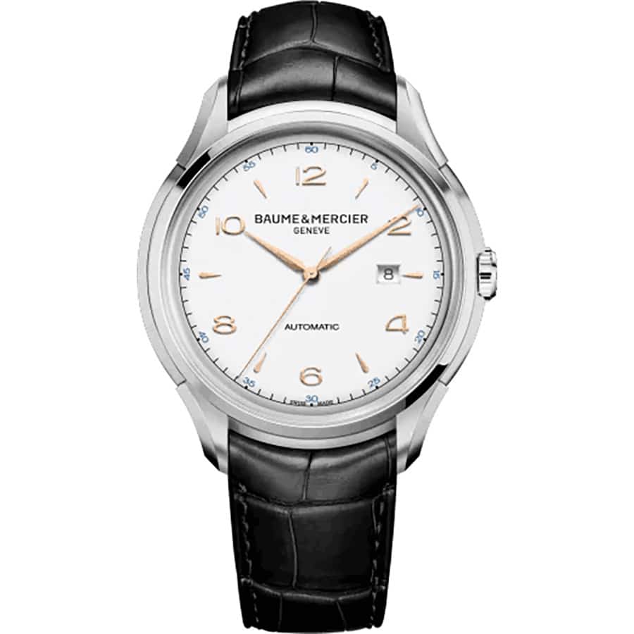 Baume and Mercier Clifton 10365 Stainless Steel With Black Leather Watch White Dial 2024