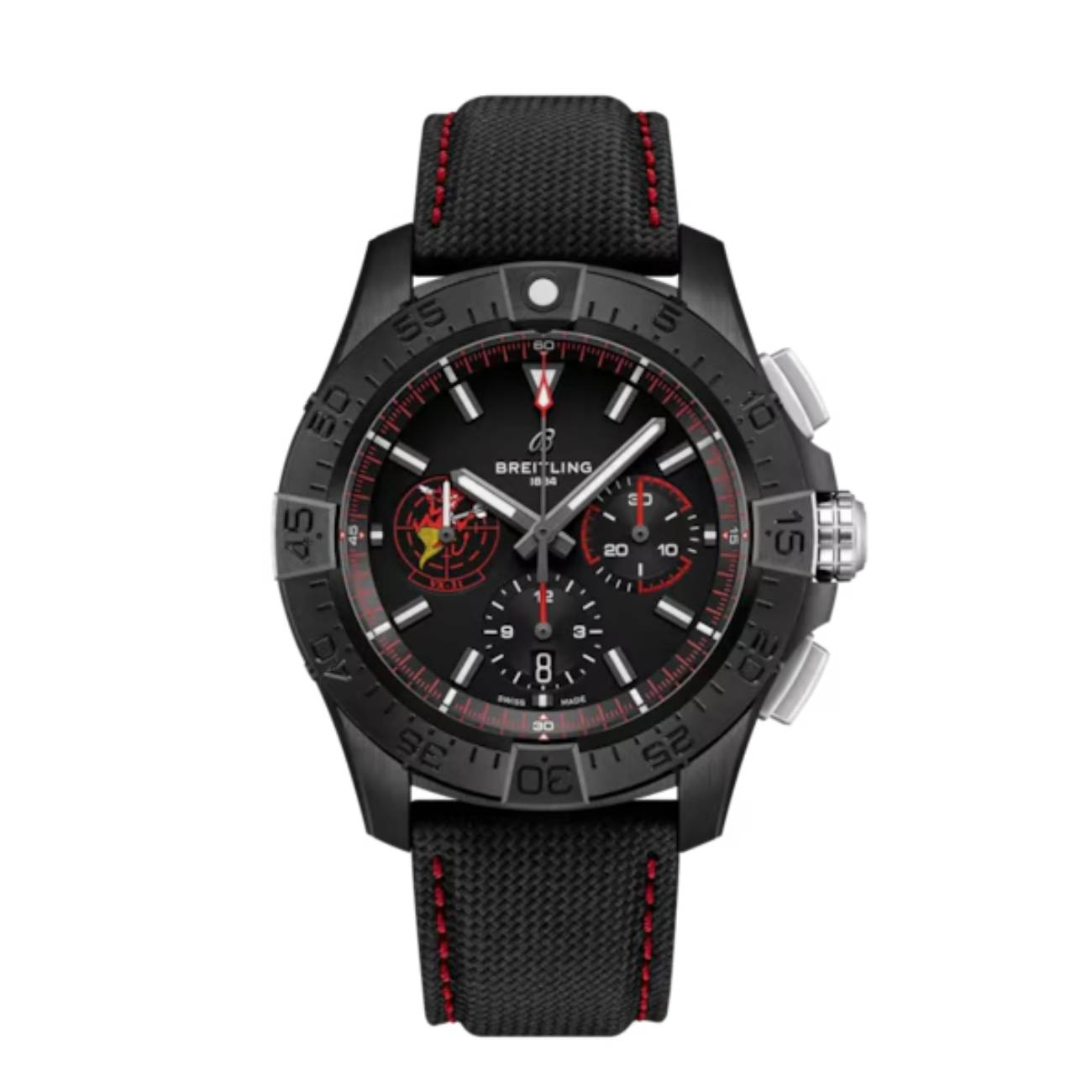 The Breitling Avenger B01 Chronograph SB01473A1B1X1 is a robust 44 mm timepiece built for performance and precision. It houses the in-house Breitling 01 self-winding caliber with a 70-hour power reserve and a 1/4th second chronograph featuring 30-minute and 12-hour counters. Operating at 28,800 v.p.h. with 45 jewels, it combines durability and accuracy in a fully ceramic case with a screw-down caseback and a glareproofed cambered sapphire crystal.