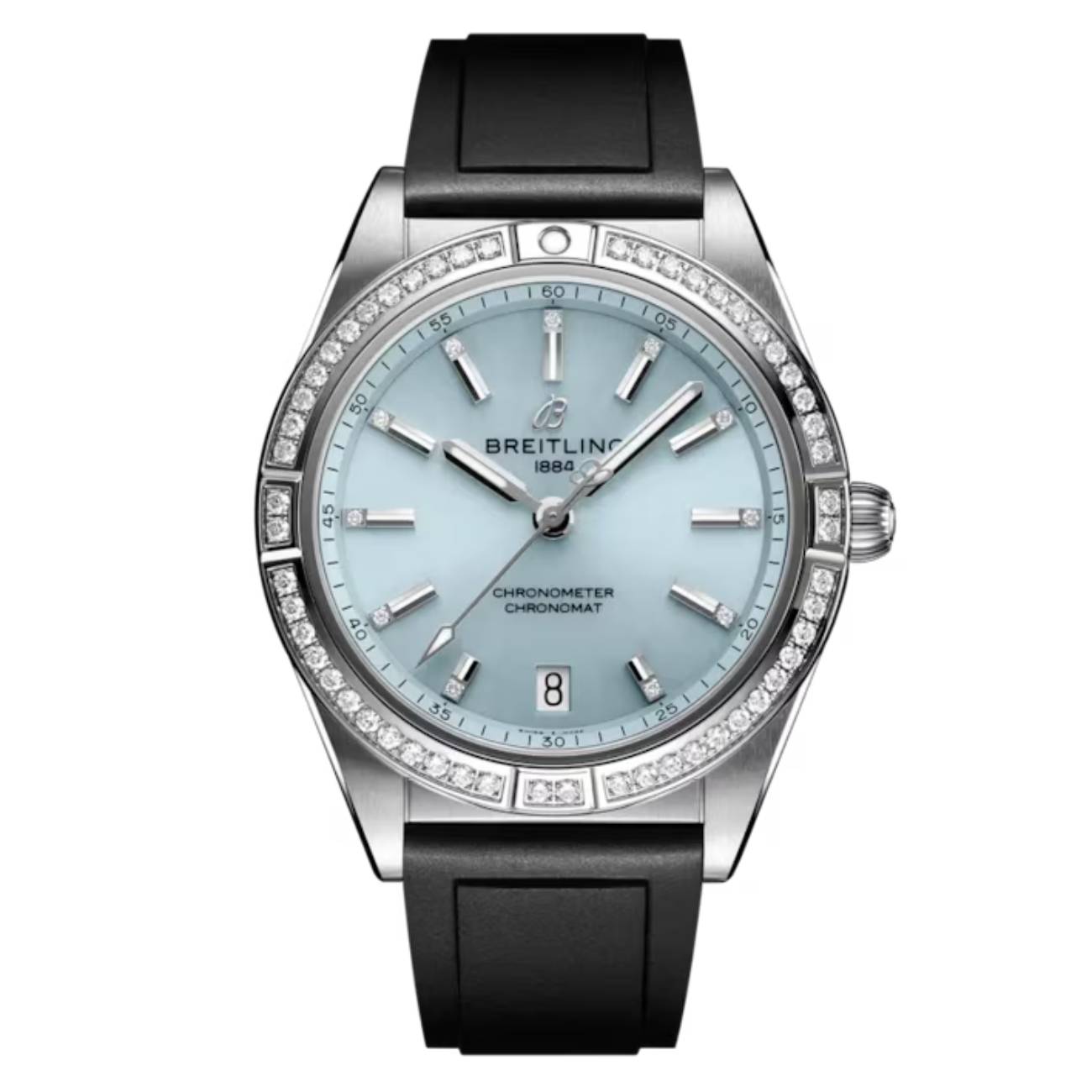 Breitling Chronomat Automatic G10380591C1S1 36mm Ice Blue Dial Uni-Directional Ratcheted Bezel Stainless Steel & 18k White Gold (Gem-set) with Black Rubber Strap Watch