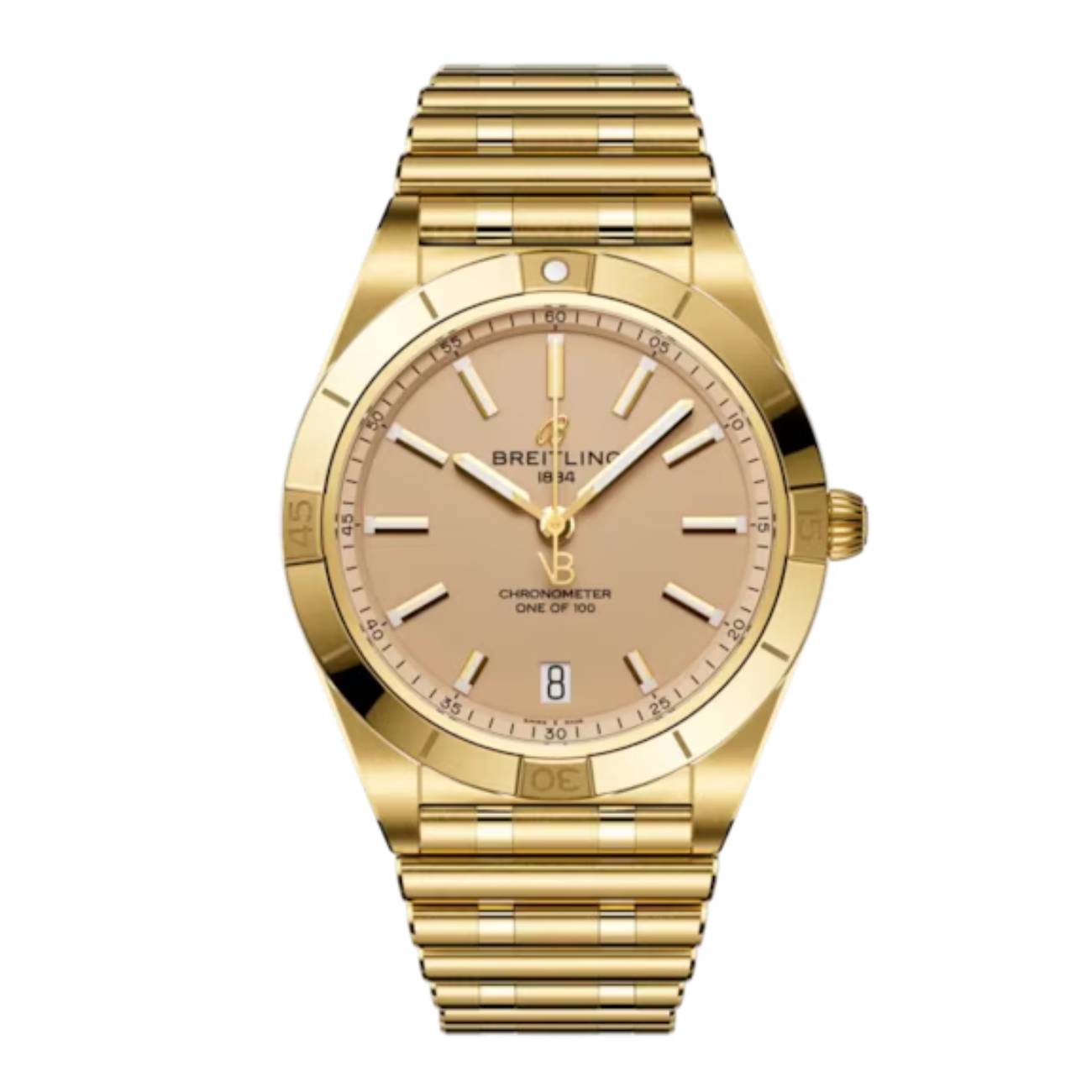 Breitling Chronomat Automatic K103801A1A1K1 36mm Champagne Dial Uni-Directional Ratcheted Bezel 18k Yellow Gold Watch