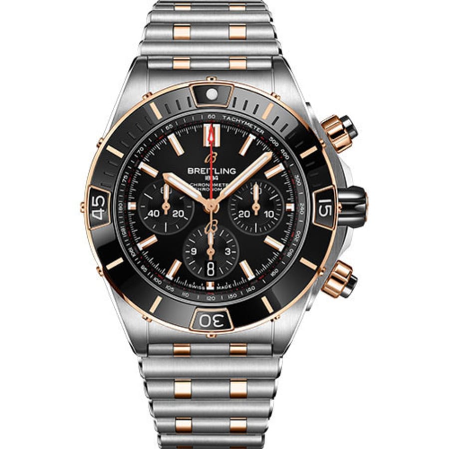 Breitling Chronomat B01 44mm Stainless Steel & Rose Gold Watch Black Dial UB0136251B1U1 2024