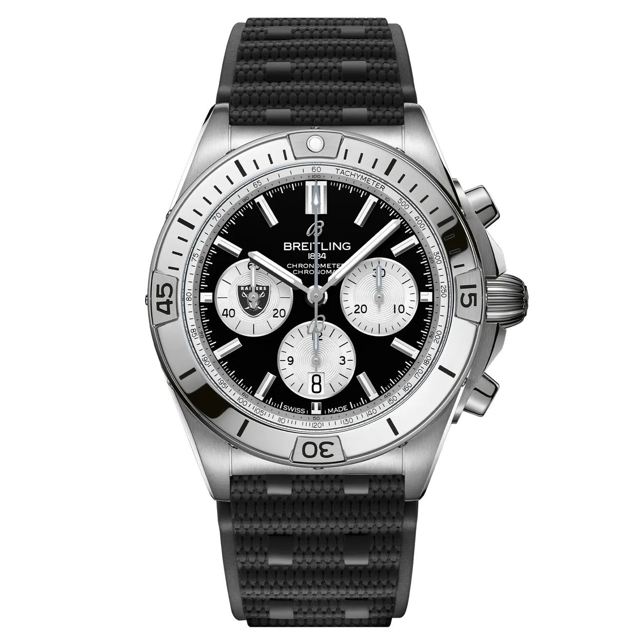 Breitling Chronomat B01 AB01342B1B1S1 42mm NFL Las Vegas Raiders Edition Black Dial Uni-directional Bezel Stainless Steel With Black Rubber Watch
