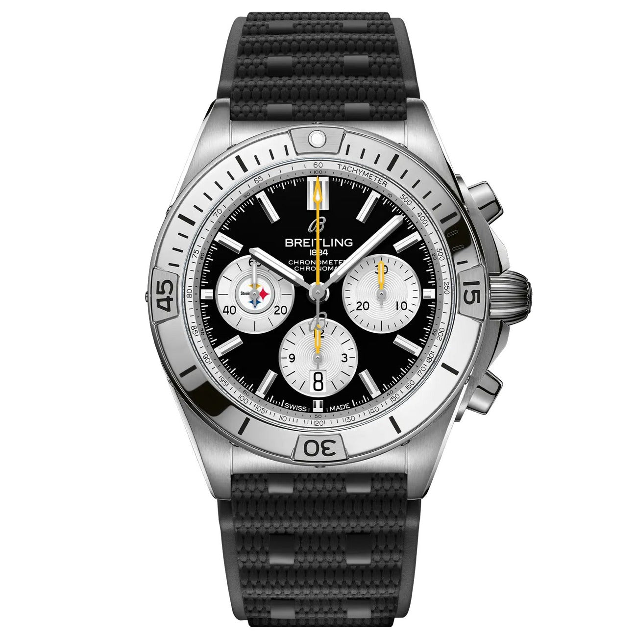 Breitling Chronomat B01 AB01342B1B2S1 NFL Pittsburgh Steelers Edition 42mm Black Dial Uni-directional Bezel Stainless Steel With Black Rubber Watch