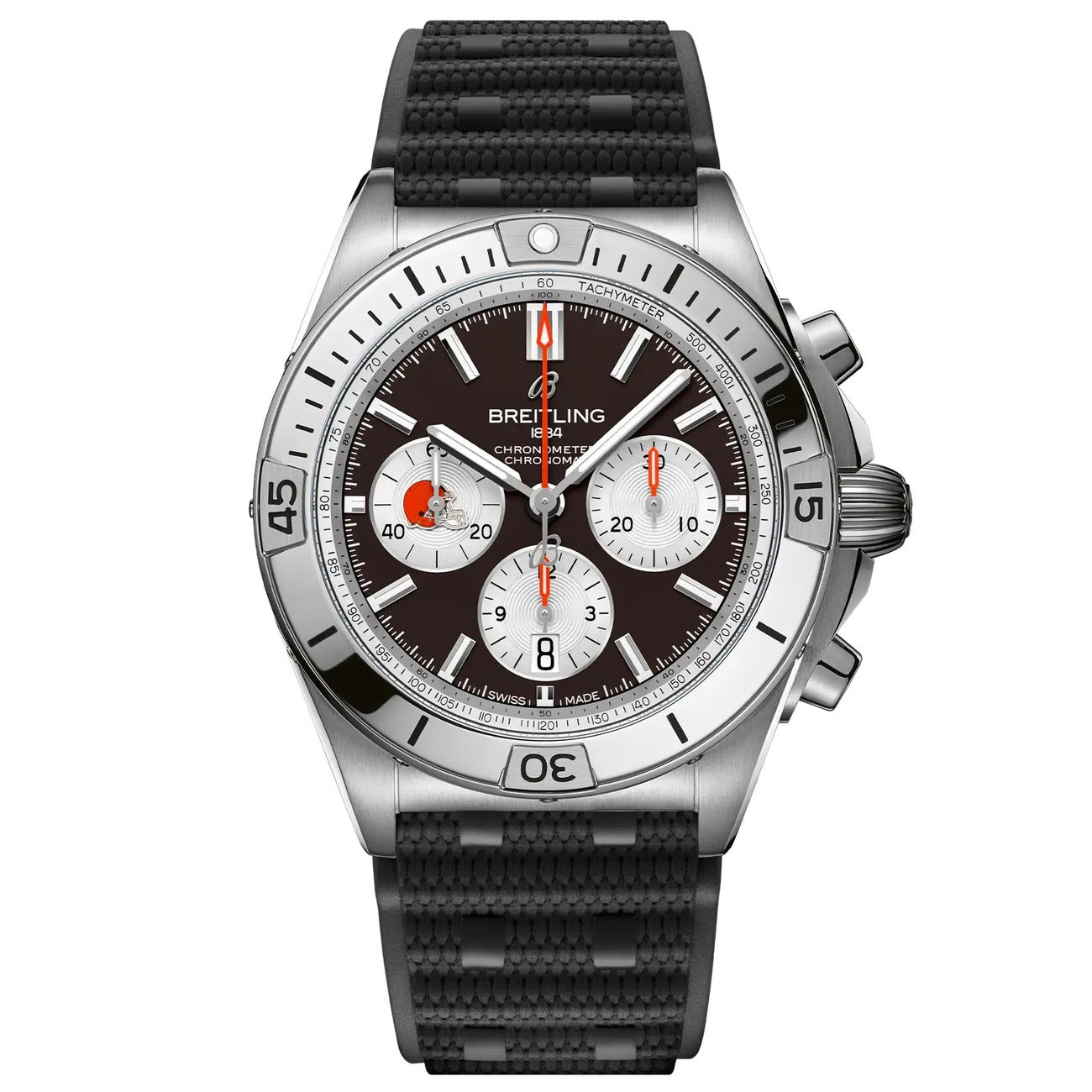 Breitling Chronomat B01 AB01342B1B6S1 NFL Cleveland Browns Edition 42mm Brown Dial Uni-directional Bezel Stainless Steel With Black Rubber Watch