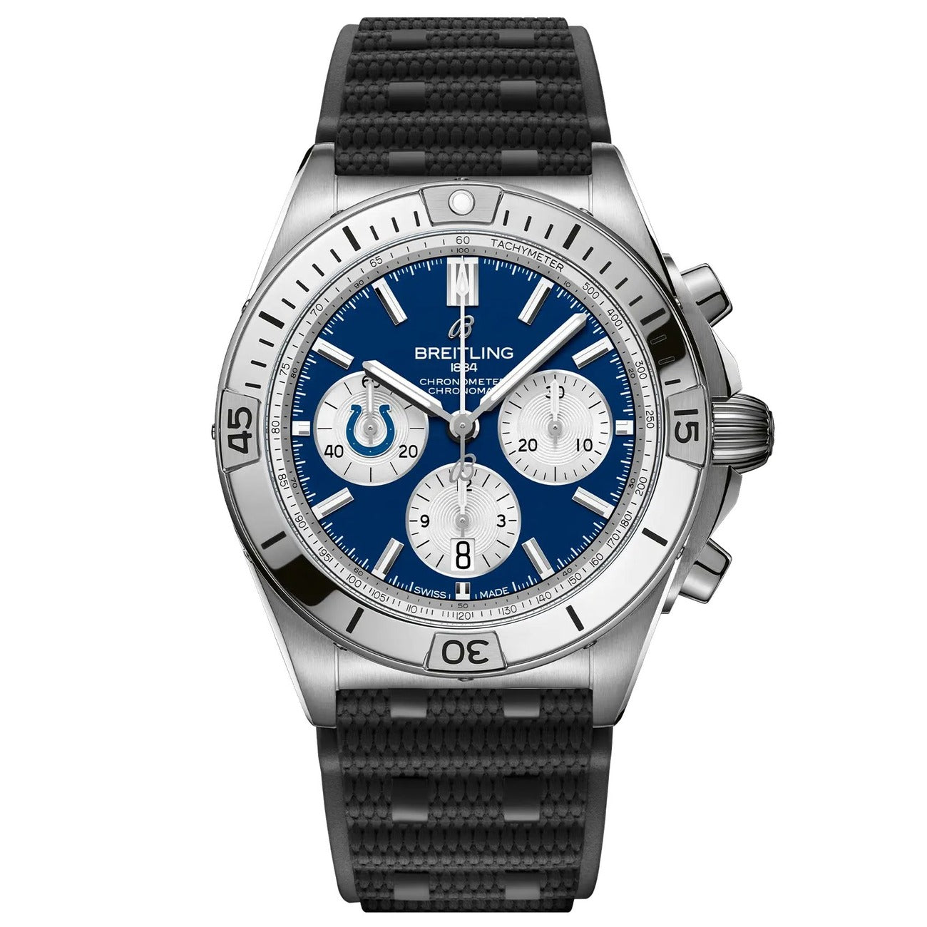 Breitling Chronomat B01 AB01342B1C2S1 NFL Indianapolis Colts Edition 42mm Blue Dial Uni-directional Bezel Stainless Steel With Black Rubber Watch