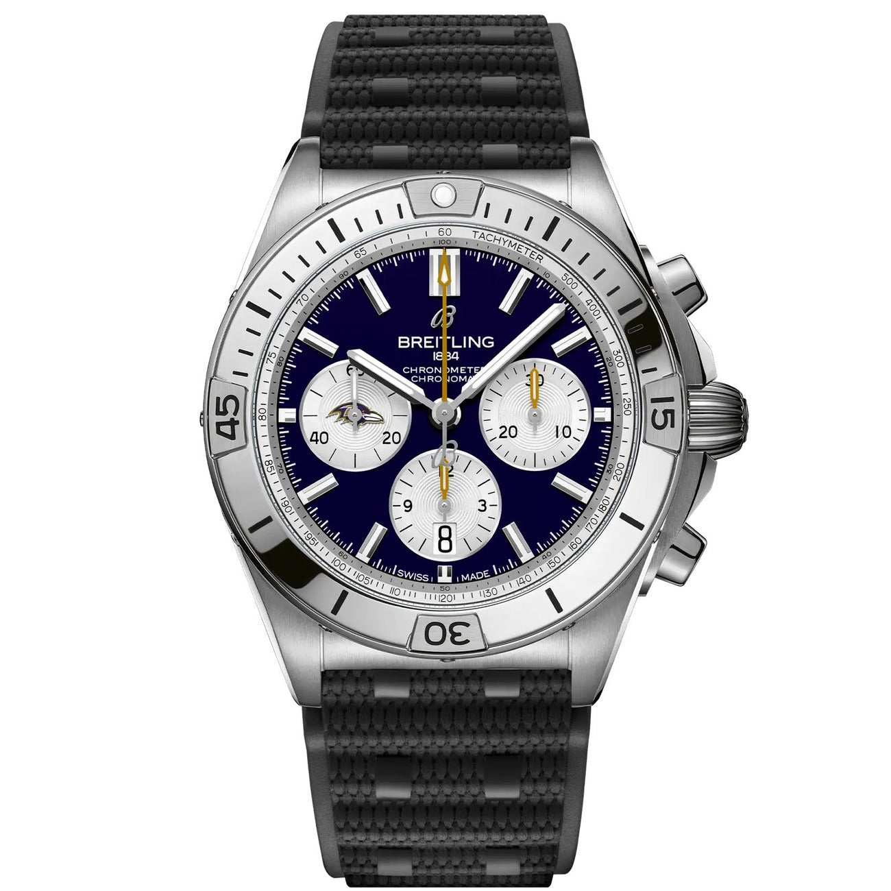 Breitling Chronomat B01 AB01342B1K2S1 42mm NFL Baltimore Ravens Edition Purple Dial Uni-directional Bezel Stainless Steel With Black Rubber Watch