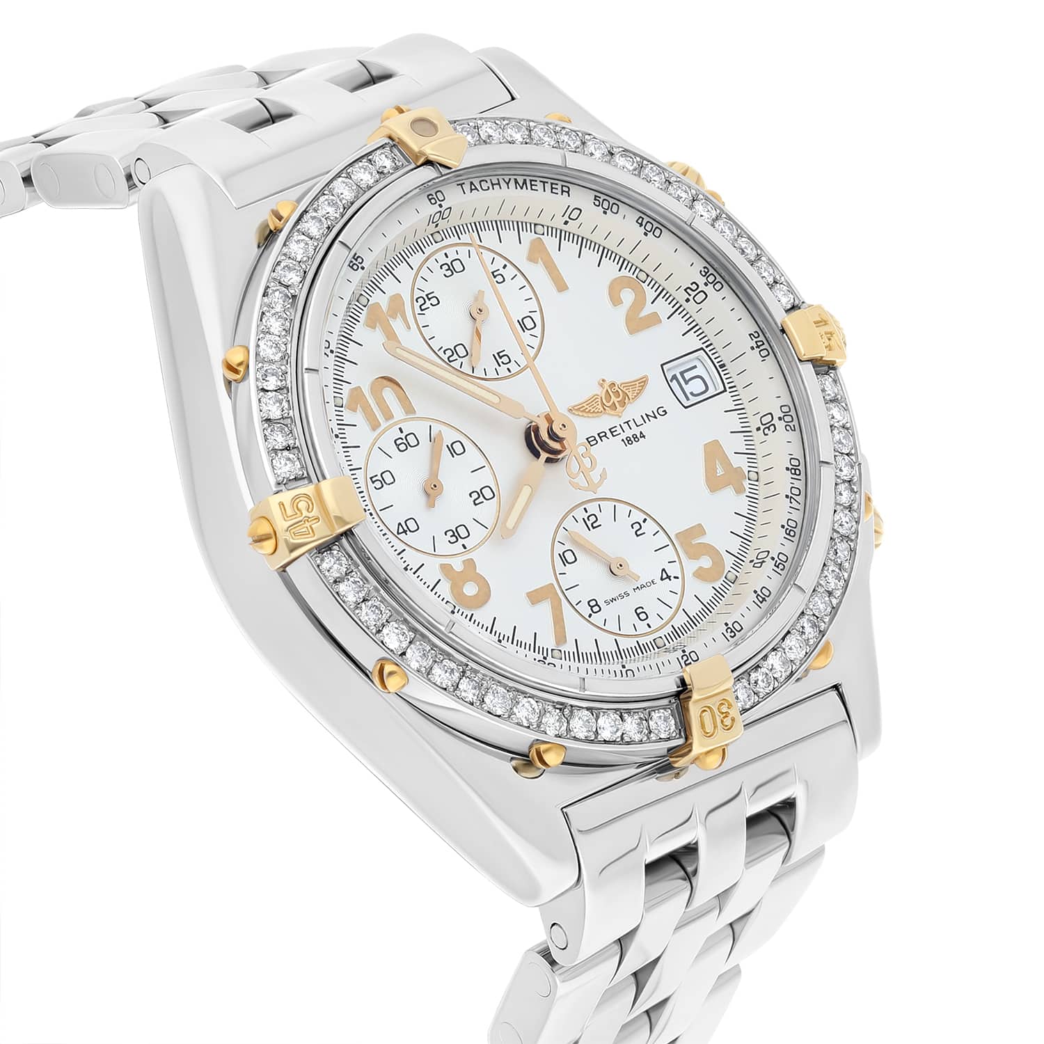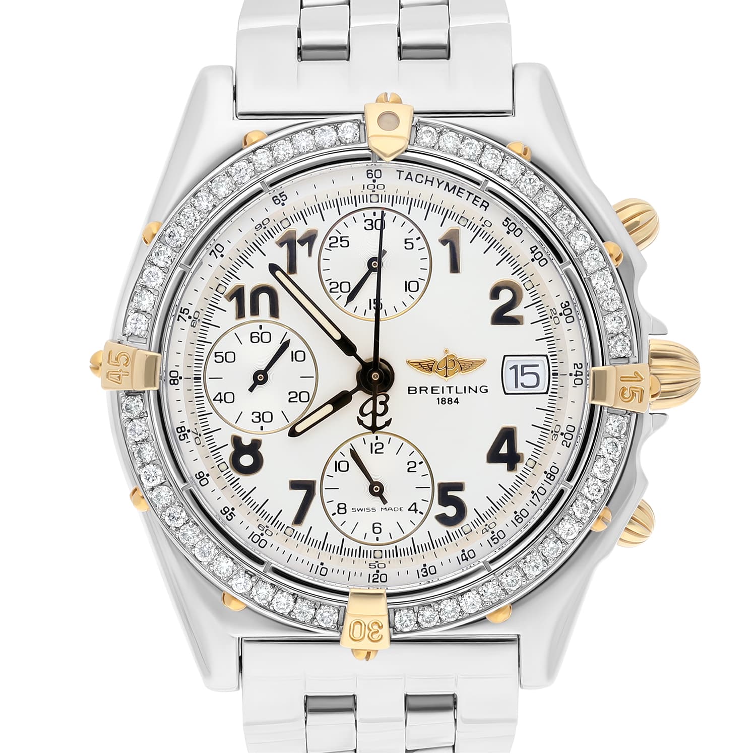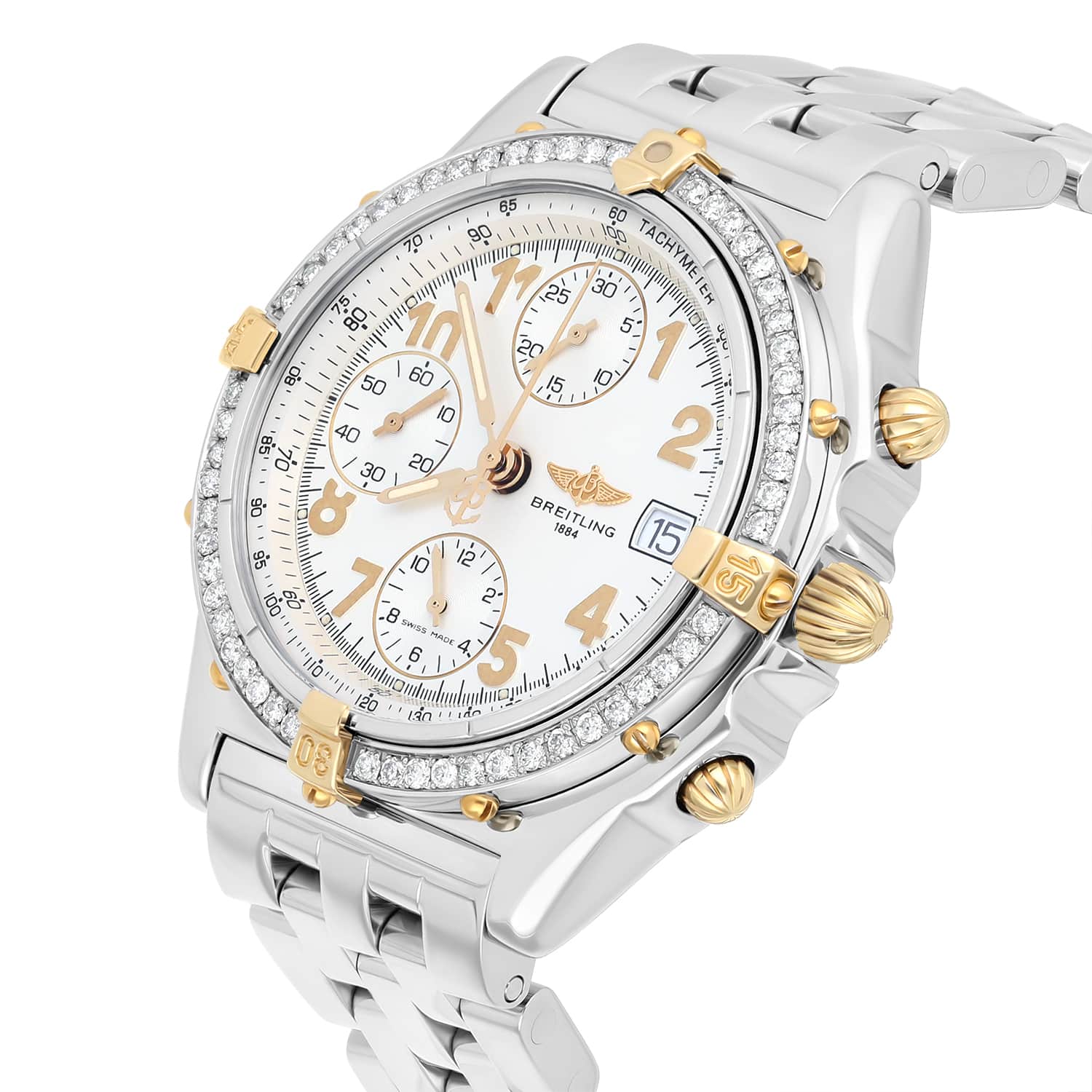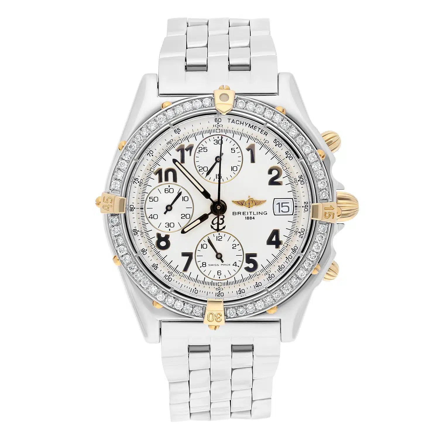 Breitling Chronomat Cream Dial 39MM Steel & 18K Yellow Gold B13050 Diamond Bezel