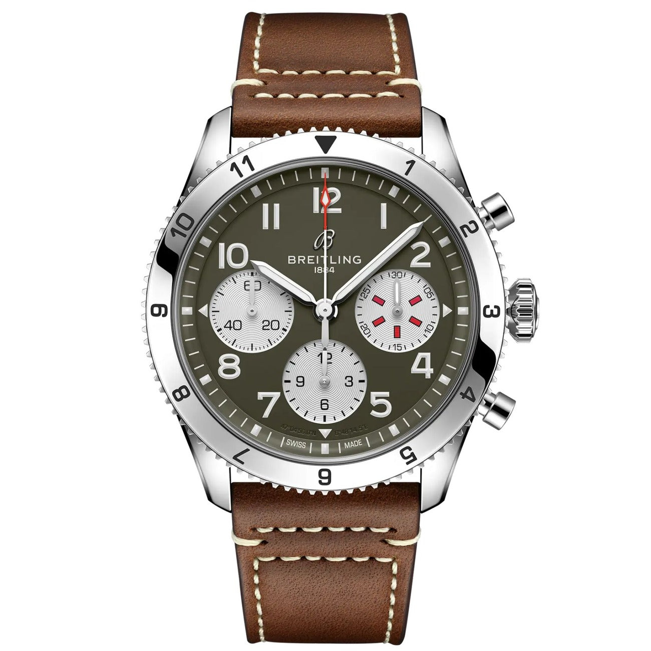 Breitling Classic AVI A233802A1L1X1 Chronograph 42mm Curtiss Warhawk Green Dial Bi-Directional Bezel Stainless Steel with Brown Calfskin Leather Strap Watch