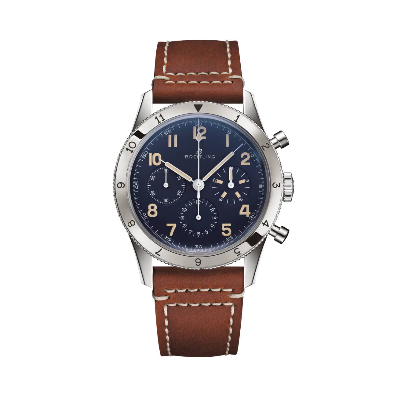 Breitling Classic AVI LB0920131C1X1 41mm Blue Dial Bi-Directional Bezel Platinum with Gold Brown Calfskin Leather Strap Watch
