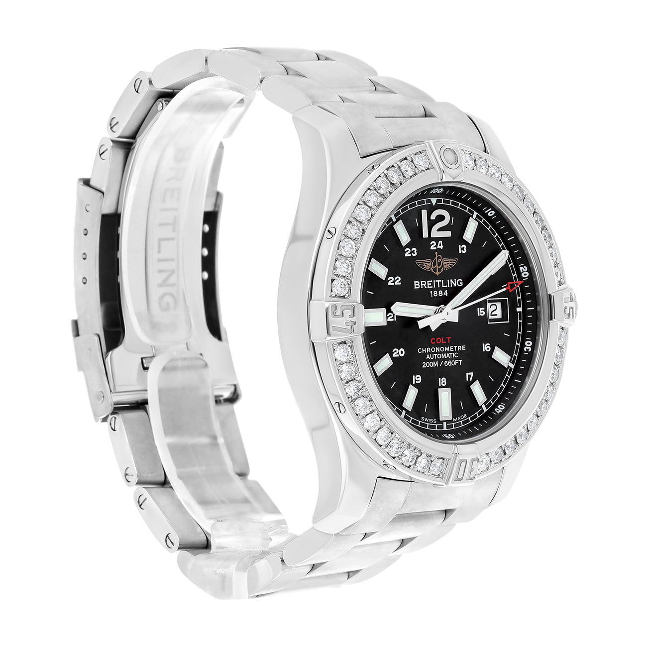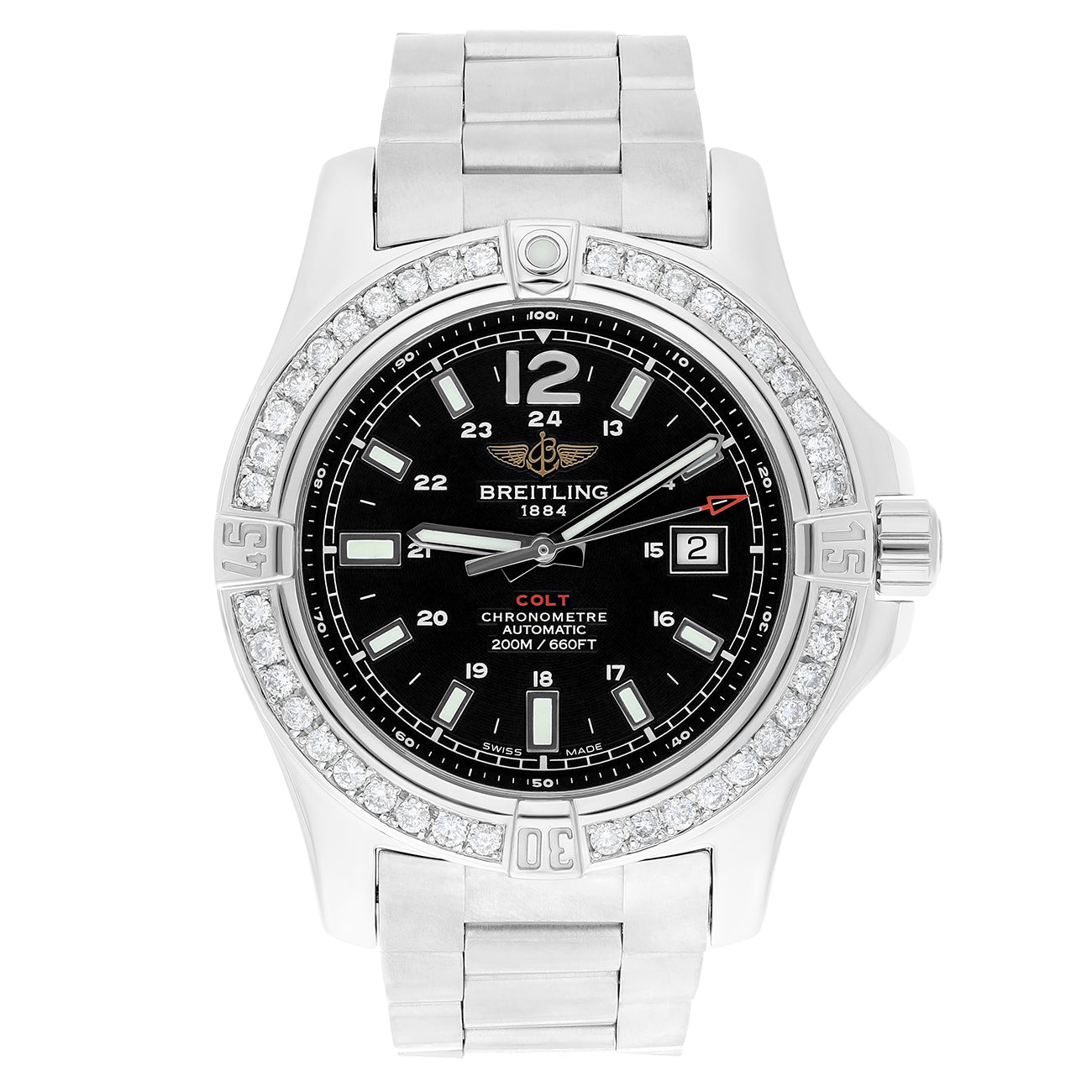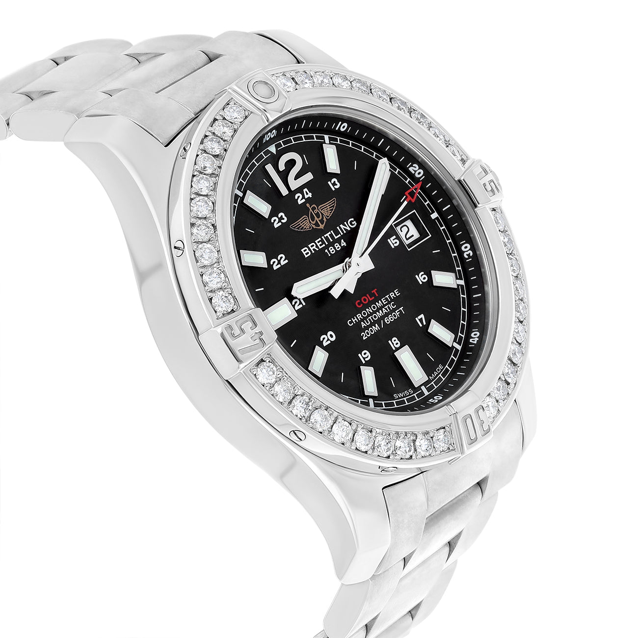 Breitling Colt A1738811/BD44 Black Dial Custom Diamond Bezel Stainless Steel Watch