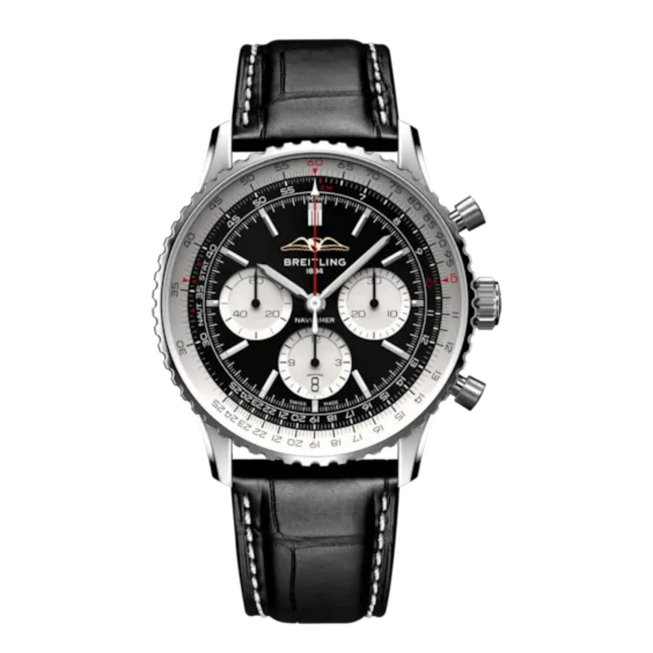 Breitling Navitimer B01 Chronograph AB0138211B1P1 43mm Black Dial Bidirectional Rotating Bezel Stainless steel with Black Alligator Strap Leather Watch