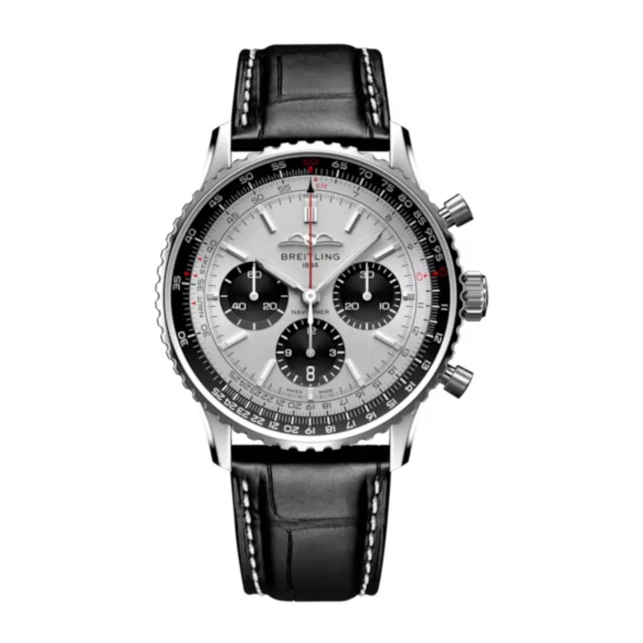 Breitling Navitimer B01 Chronograph AB0138241G1P1 43MM Silver Dial Bidirectional Rotating Bezel Stainless Steel With Black Strap Leather Watch