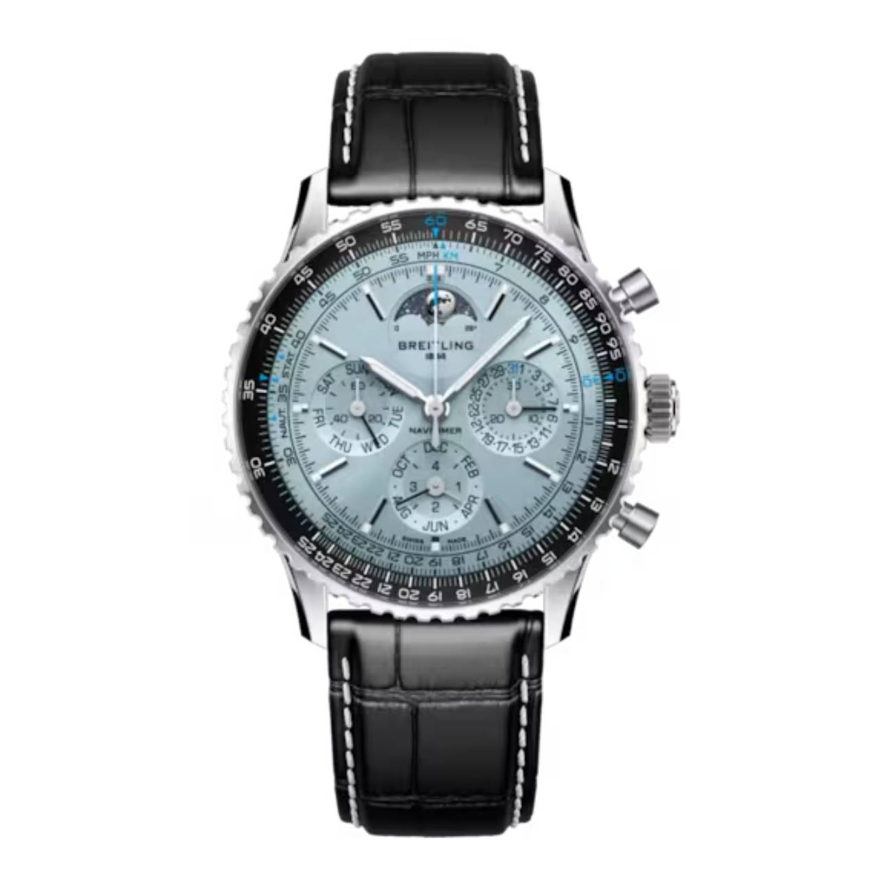 The Breitling Navitimer B19 PB1920251C1P1 is a refined and technically sophisticated timepiece that blends classic design with modern horology. Powered by the Breitling B19 self-winding manufacture caliber, it boasts an impressive 96-hour power reserve and features a full chronograph function along with a perpetual calendar and moon-phase complication—making it both functional and elegant. The 43mm case is crafted from stainless steel and platinum, offering a balanced mix of durability and prestige.