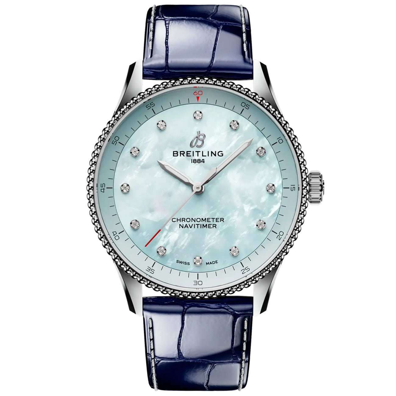 Breitling Navitimer Chronometer A77320171C1P1 Quartz Stainless Steel with Blue Alligator Leather Watch Blue MOP Dial 2024