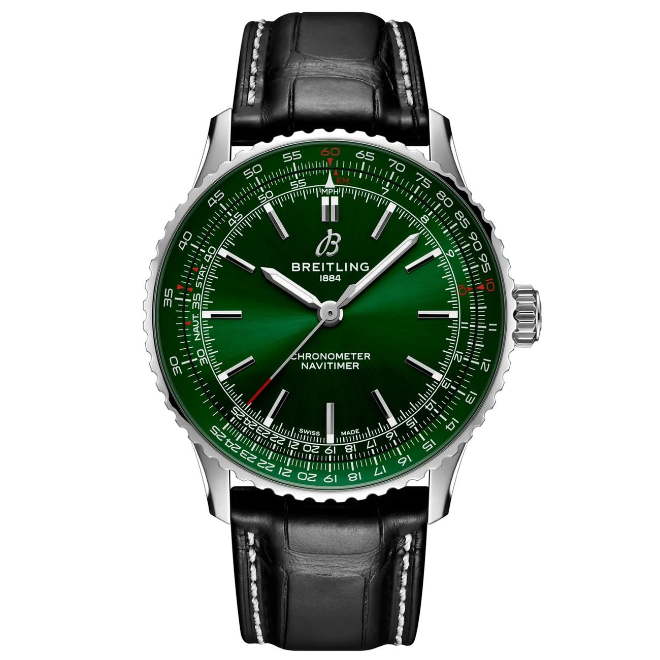 Breitling Navitimer Green Dial A17329371L1P1 Stainless Steel with Black Leather Watch 2024