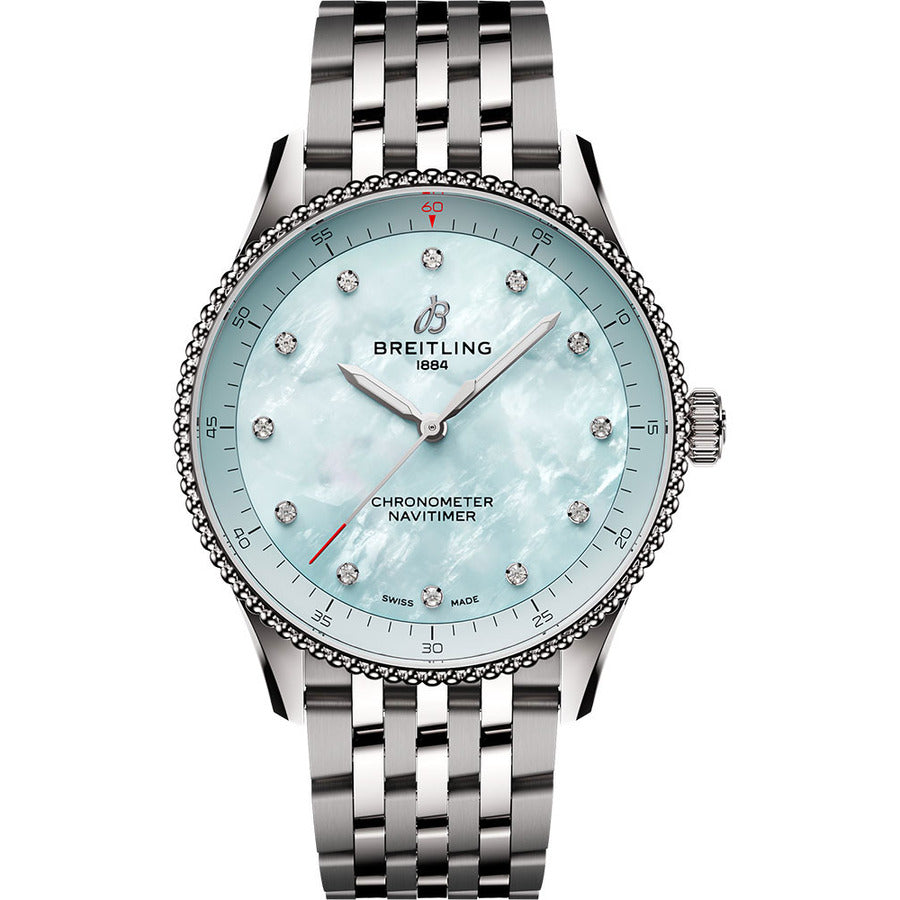 Breitling Navitimer Quartz Chronometer A77320171C1A1 Stainless Steel Diamond Ladies Blue Mother-Of-Pearl Dial Watch