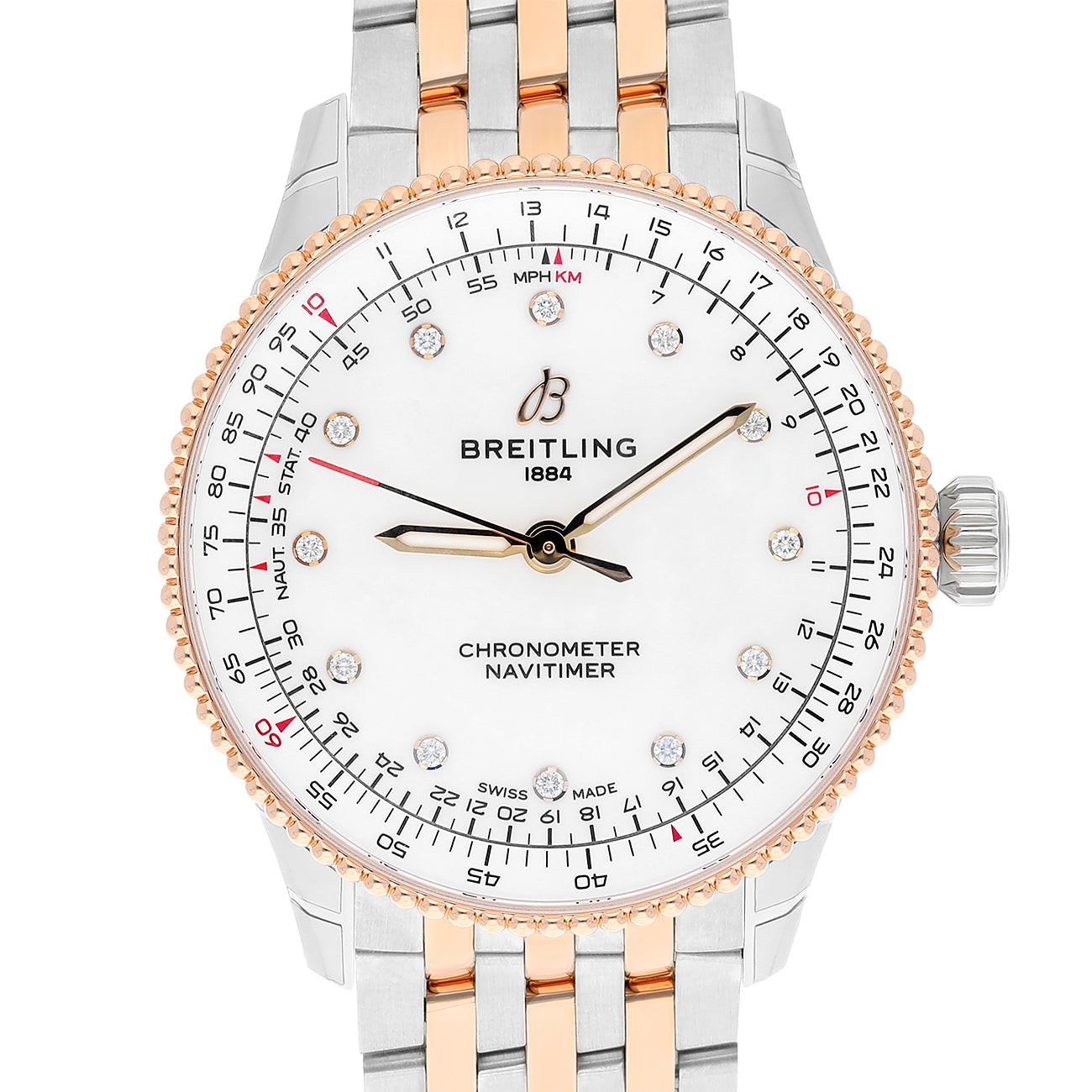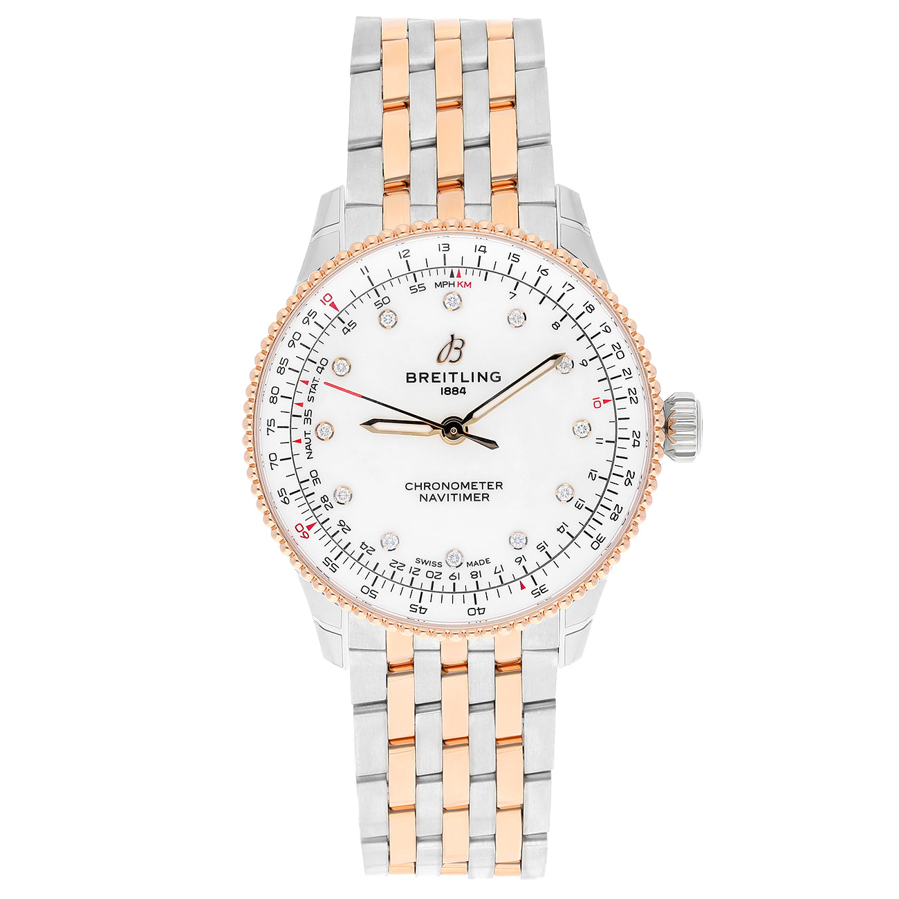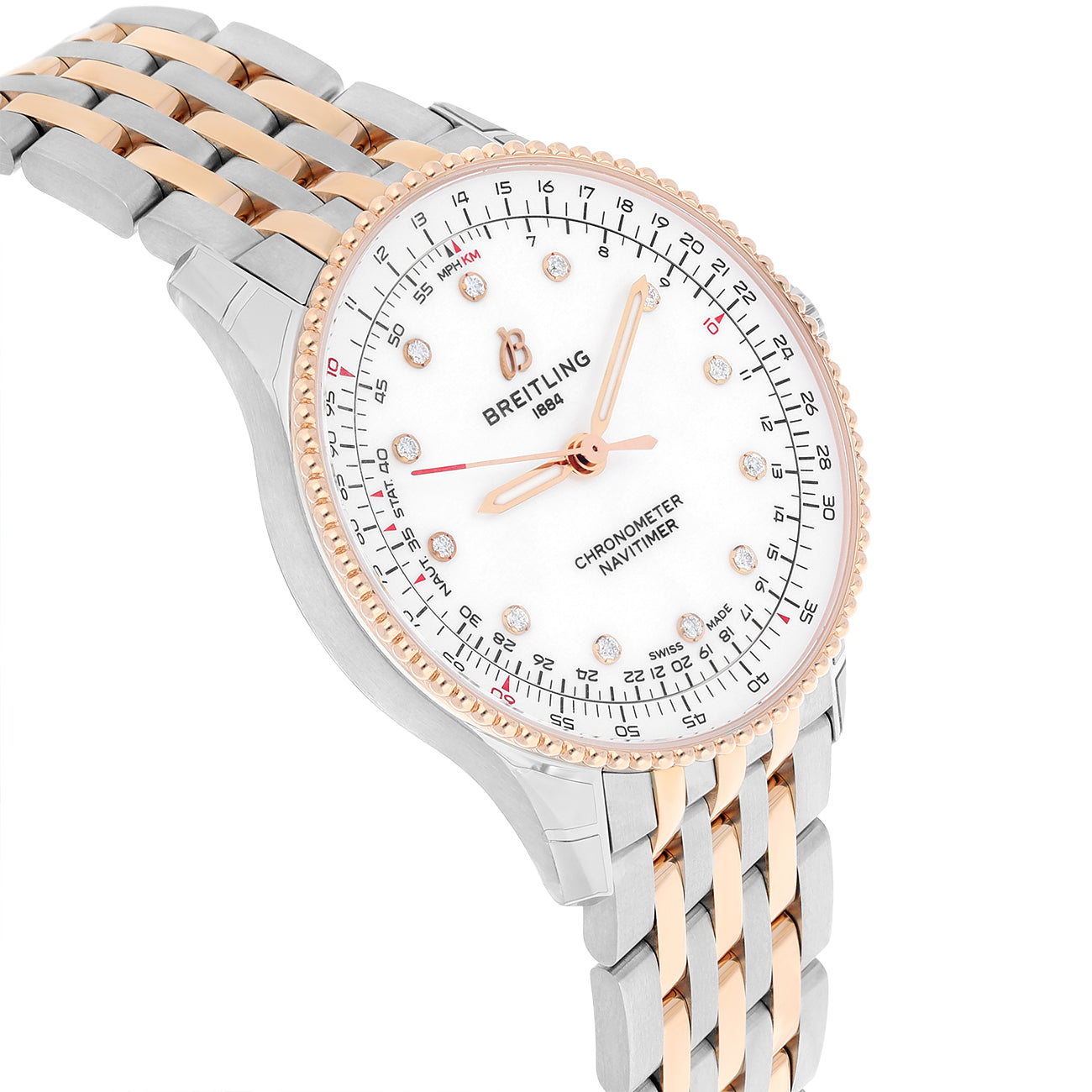 Breitling Navitimer U17327211A1U1 36mm White MOP Diamond Dial Stainless Steel & Rose Gold Watch