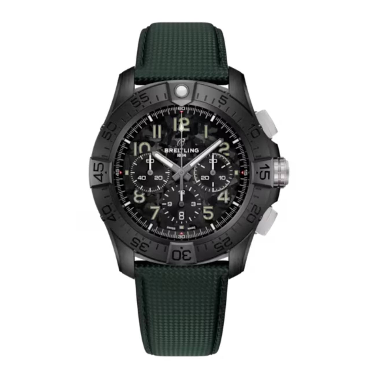 Breitling Super Avenger B01 Chronograph Night Mission SB0148101B1X1 46mm Black Camouflage Patterened Dial Unidirectional, Ratcheted Bezel Ceramic With Khaki Green Calfskin Leather Strap Watch