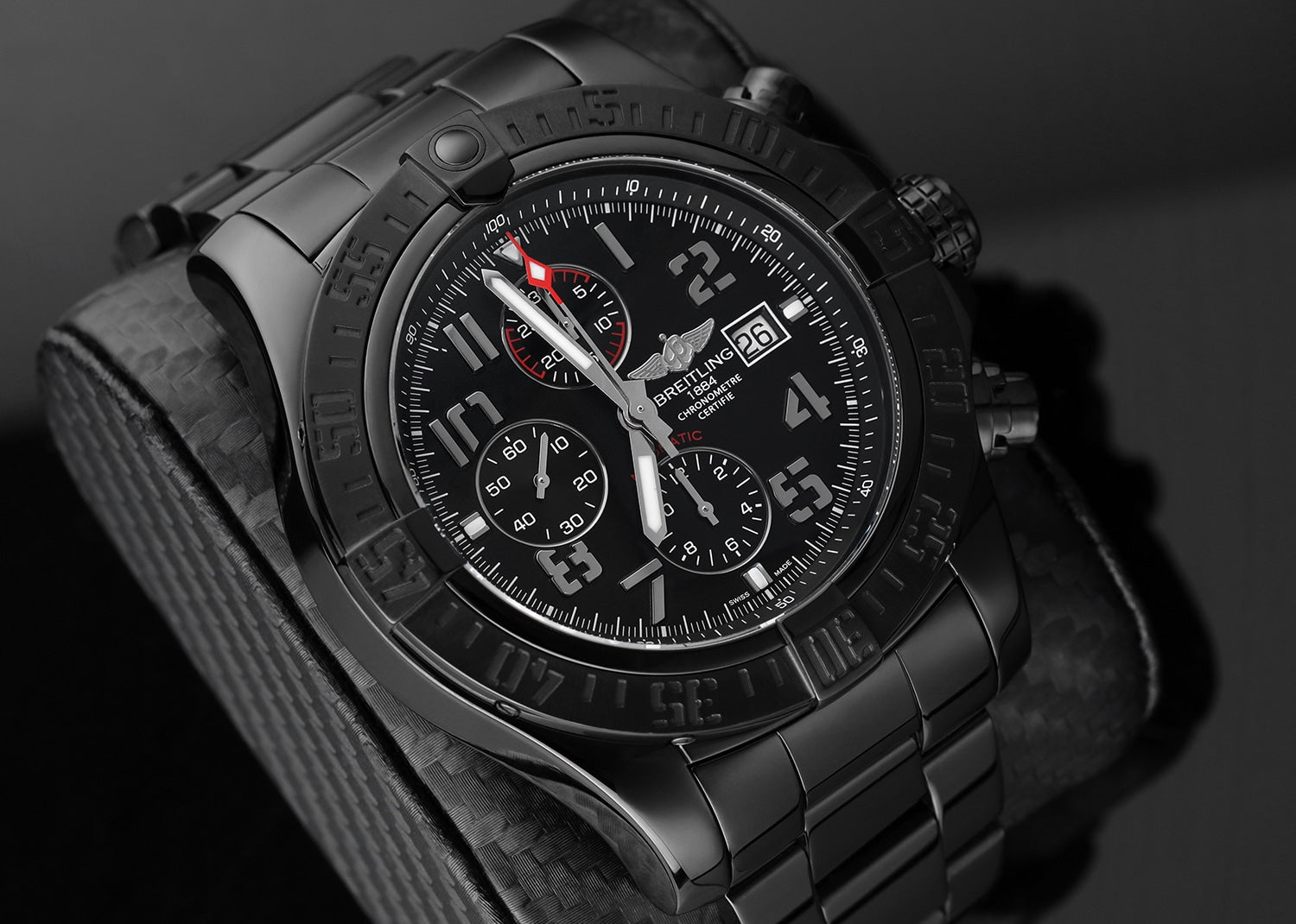 Breitling Super Avenger II Chronograph A13371 Black PVD/DLC Coated Watch. Watch has never been worn after coating has been applied.