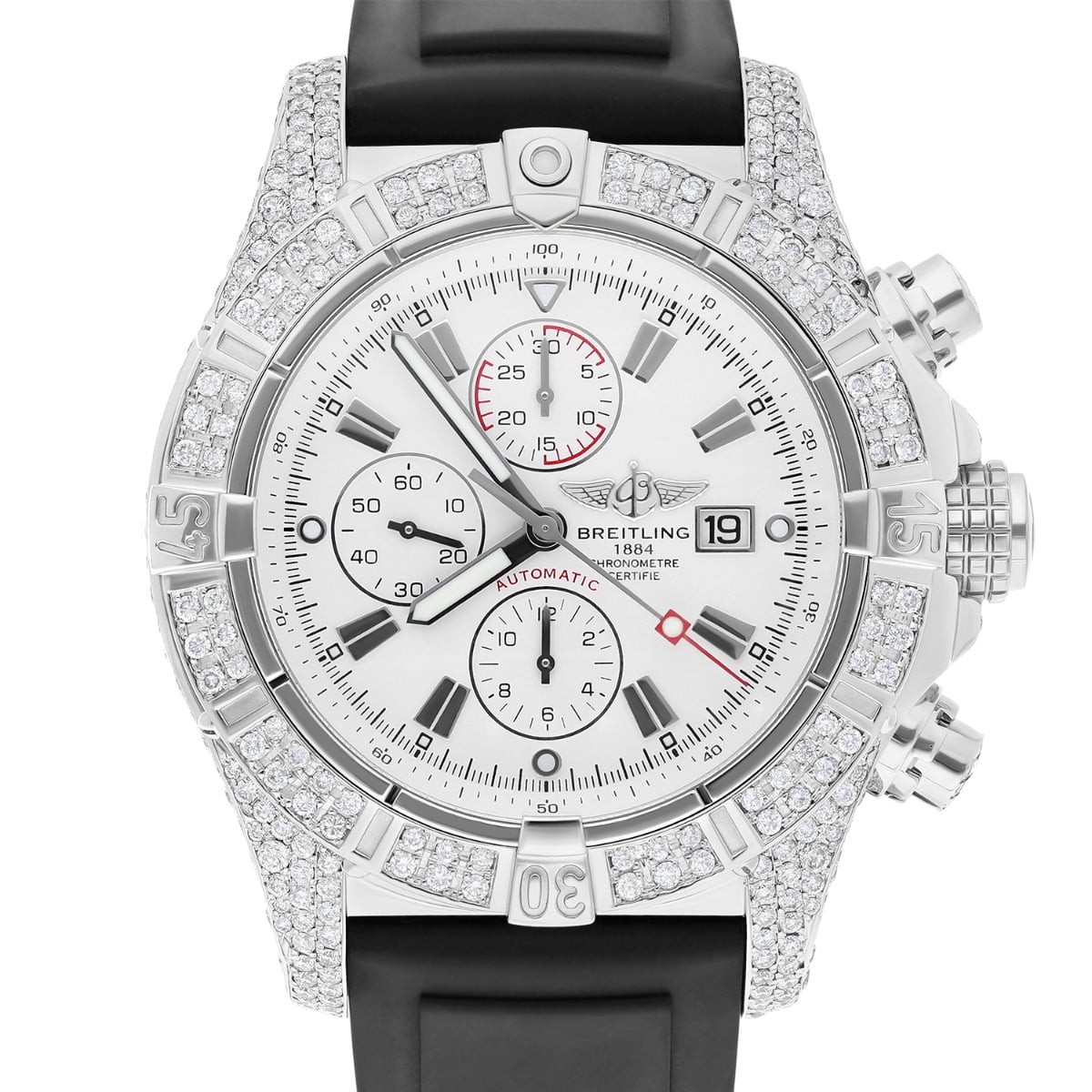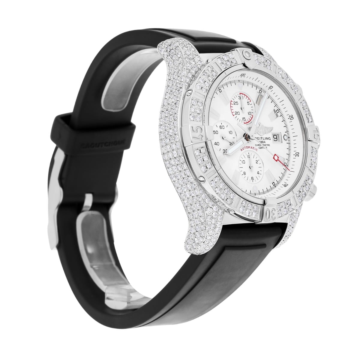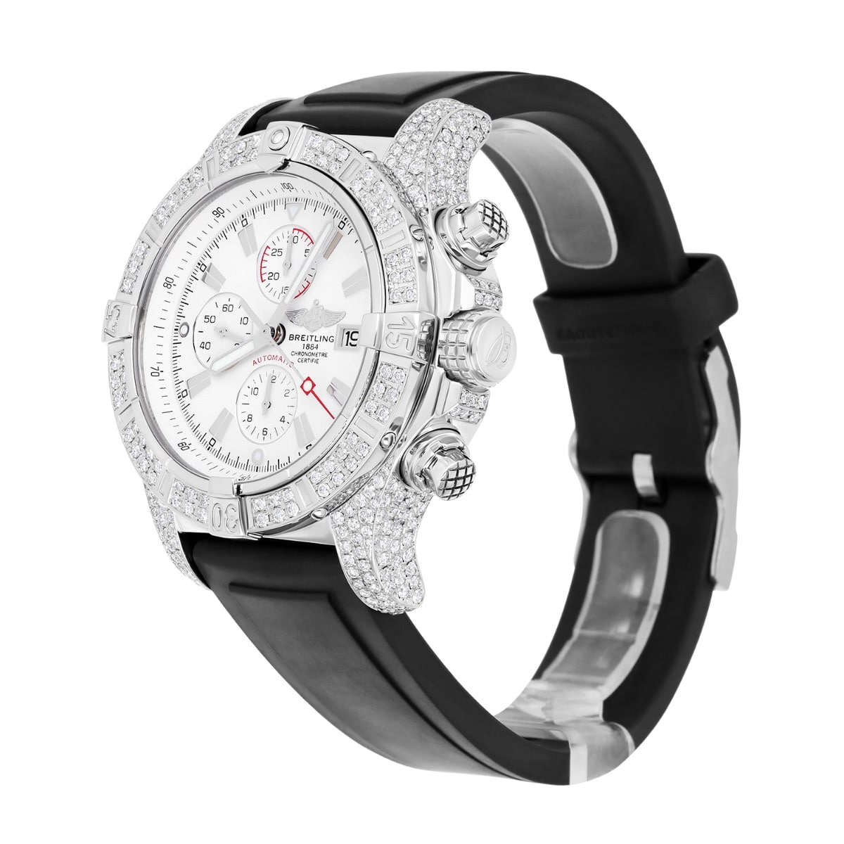 Breitling Super Avenger White Dial A13370 Stainless Steel Custom Diamond Watch