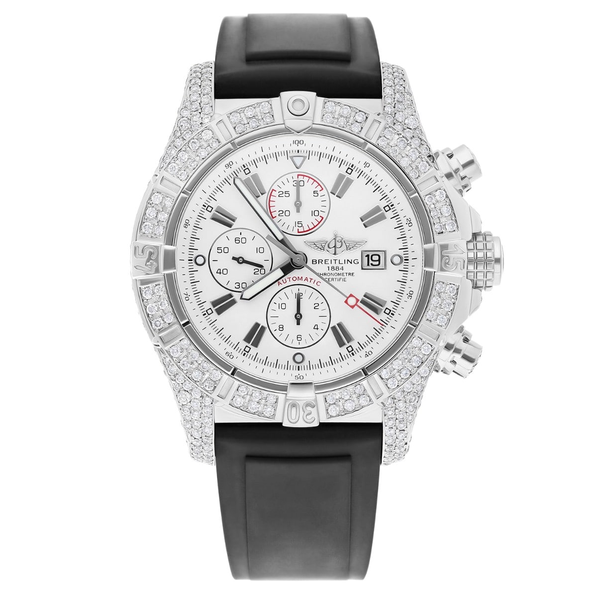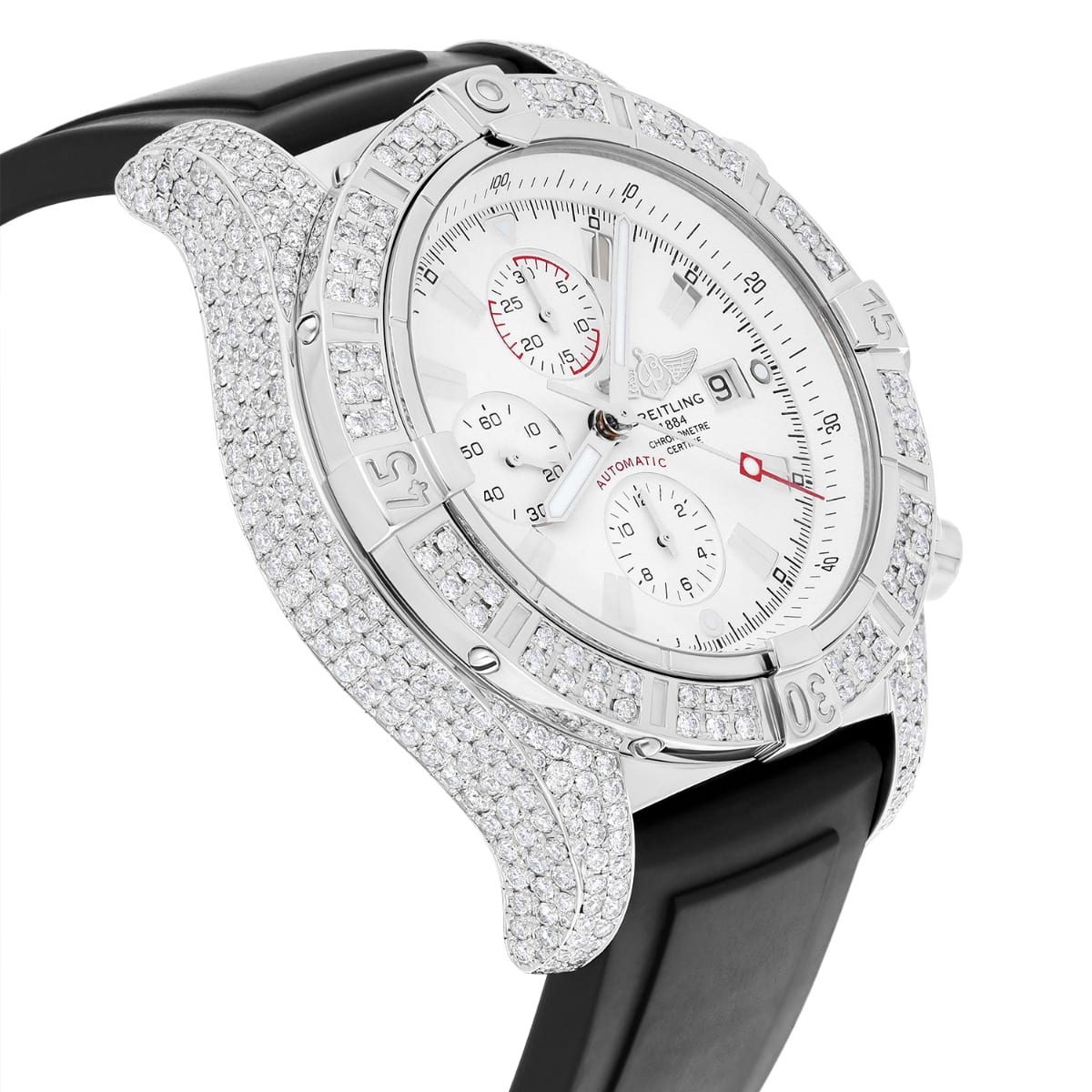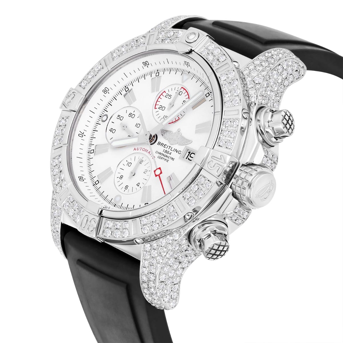 Breitling Super Avenger White Dial A13370 Stainless Steel Custom Diamond Watch