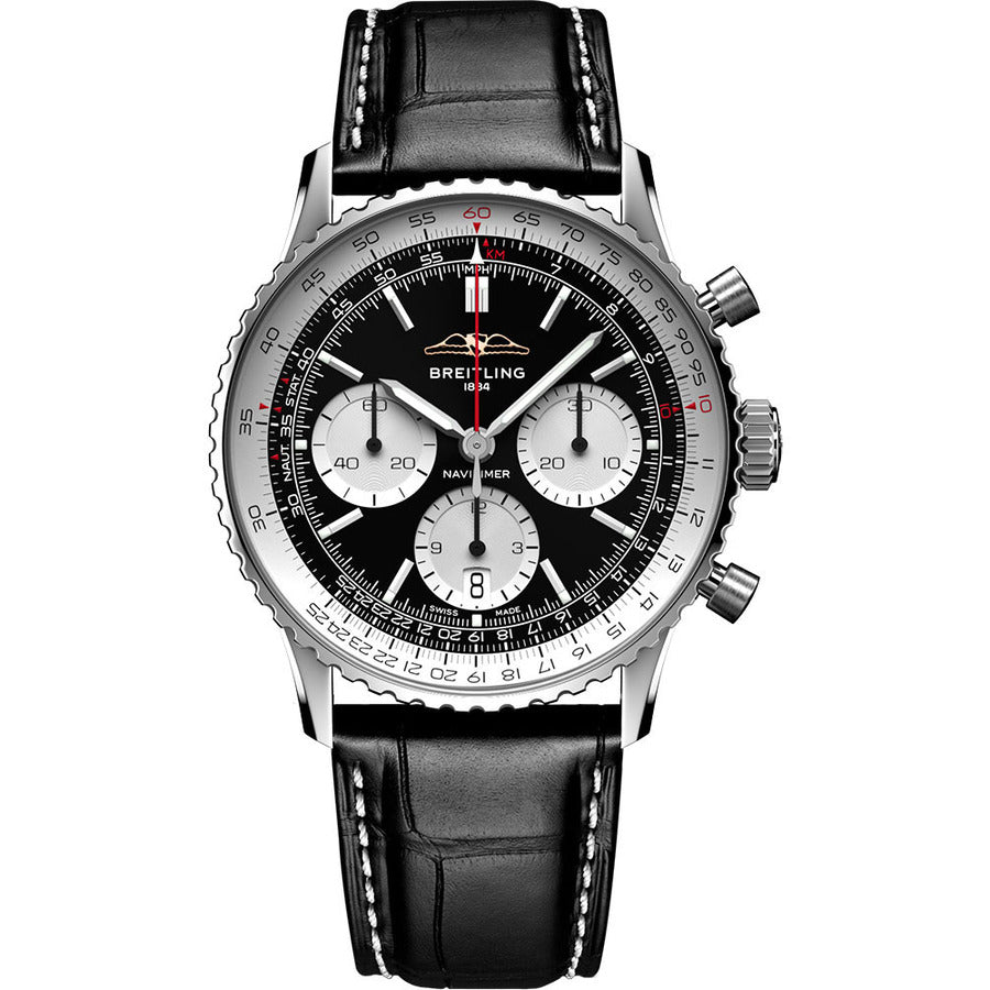 Breitling Super Navitimer B01 41mm Stainless Steel AB0139211B1A1 Black Leather Black Dial Men's Watch 2024