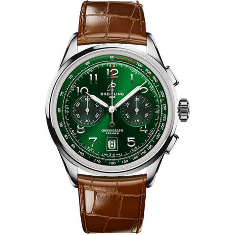 Breitling Superocean B01 Green Dial Chronogragh 42mm AB0145371L1P1 Stainless Steel With Brown Leather Watch 2024