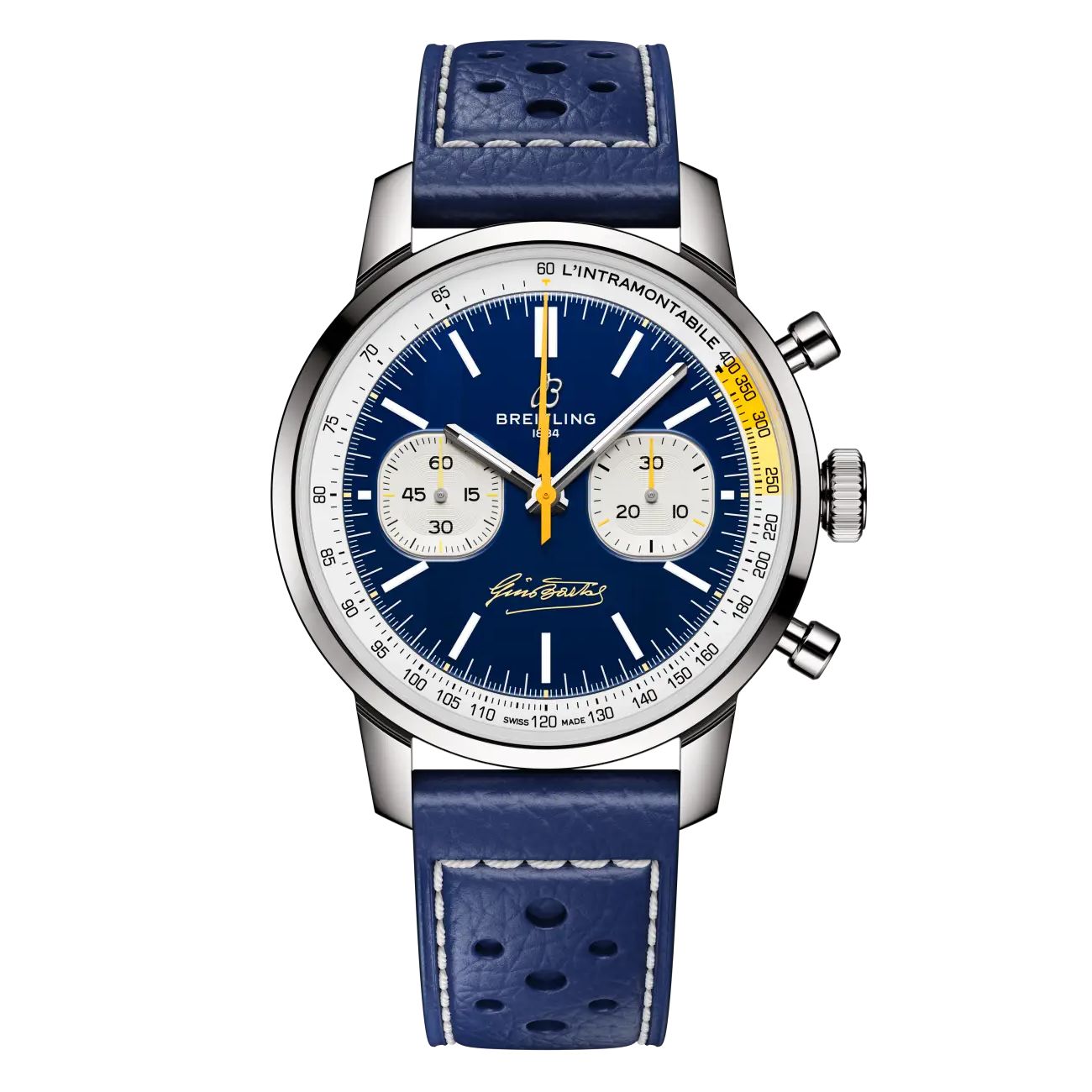 Breitling Top Time AB01767A1C1X1 B01 Gino Bartali 41mm Blue Dial Fixed Bezel Stainless Steel With Blue Calfskin Leather Strap Watch