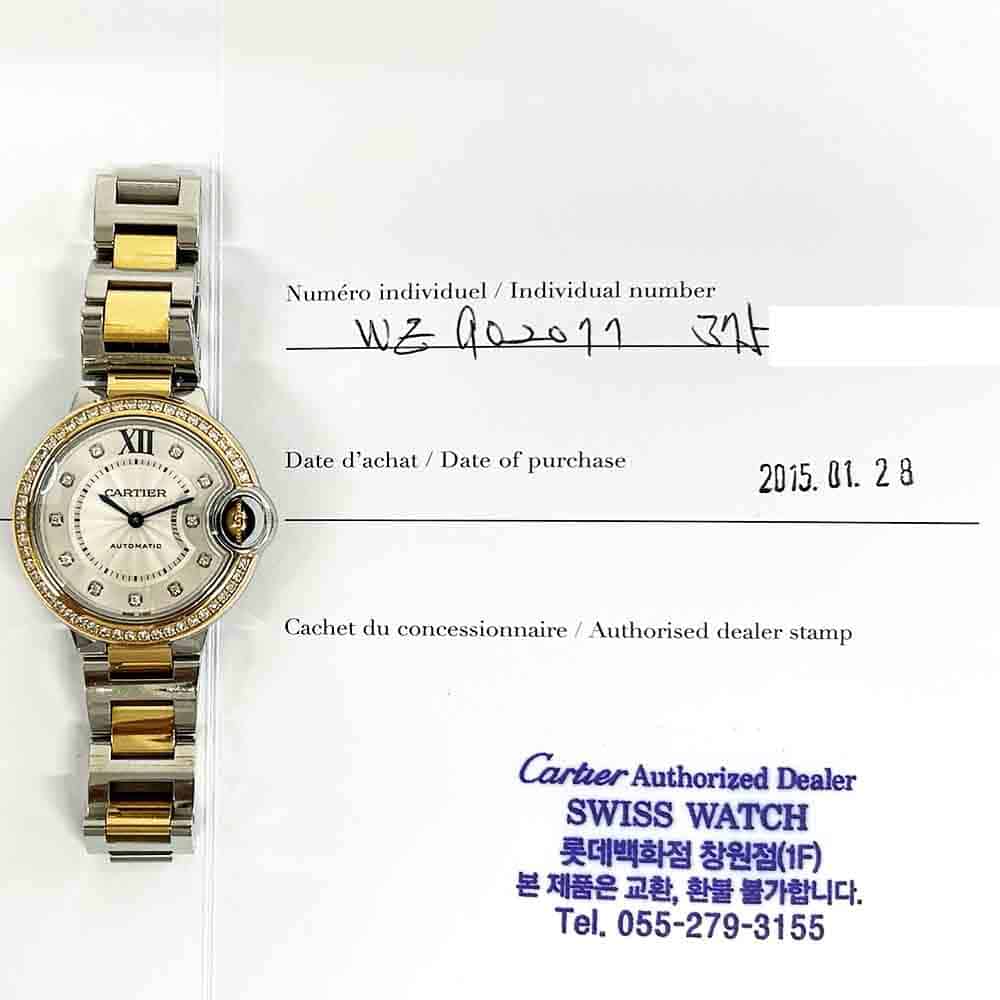 Cartier Ballon Bleu 33mm Diamond Bezel WE902077 with Silver Dial 2015 Watch