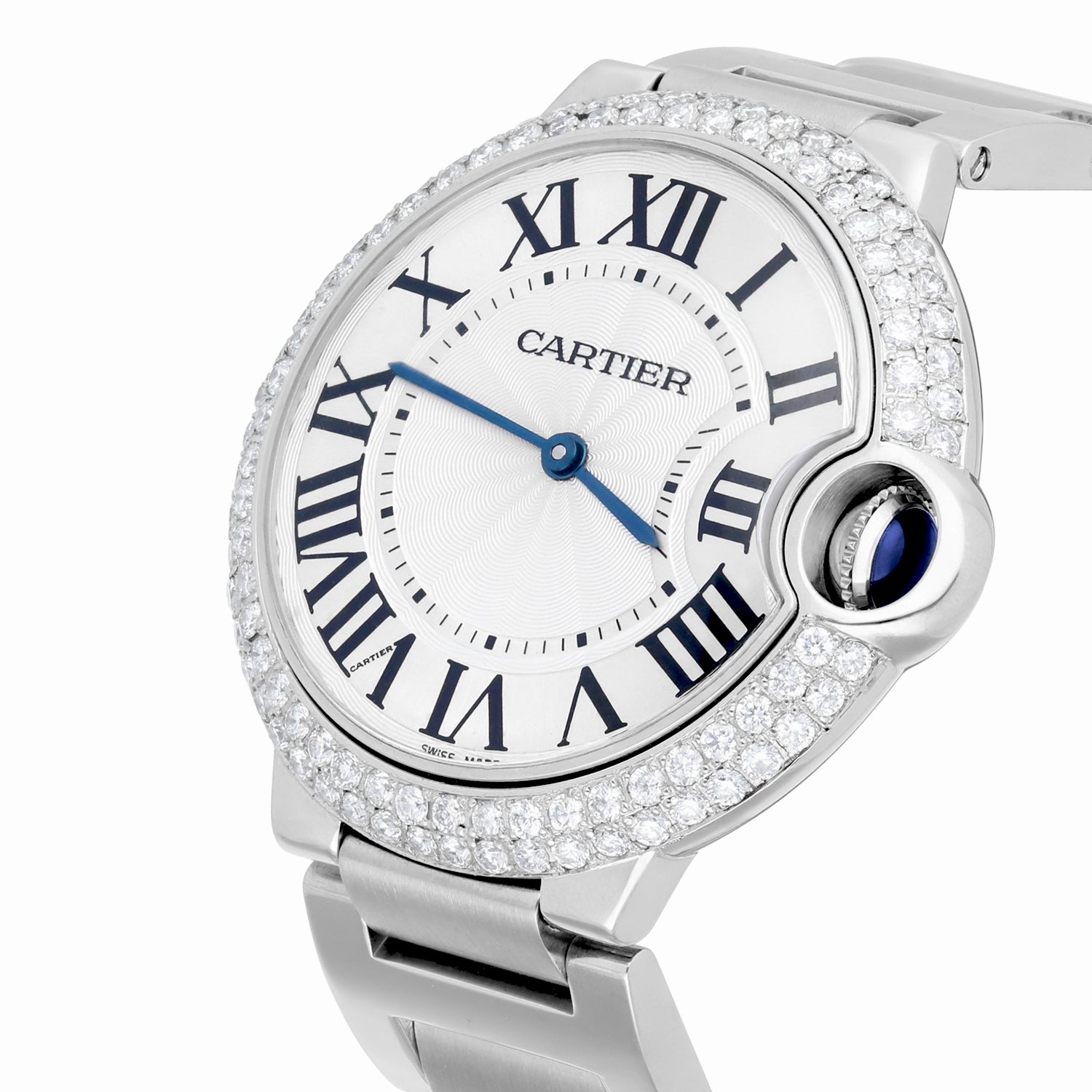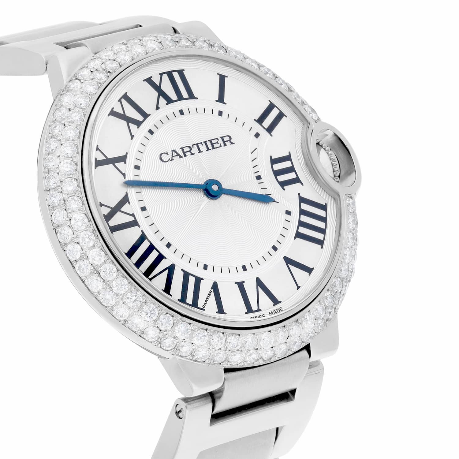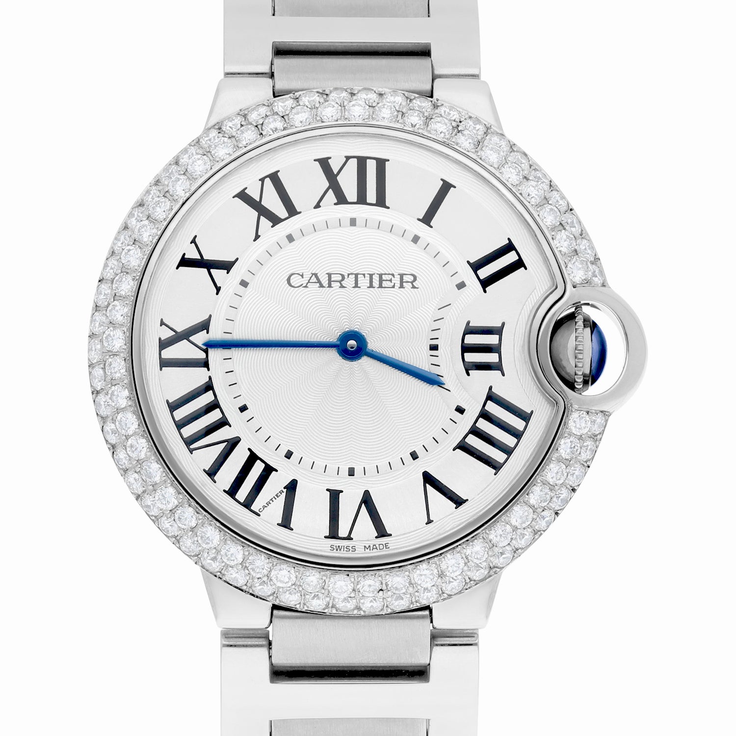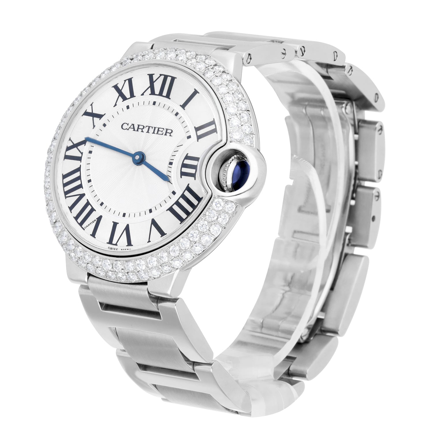 Cartier Ballon Bleu 36mm W69011Z4 36mm Unisex Watch Custom Diamond Bezel