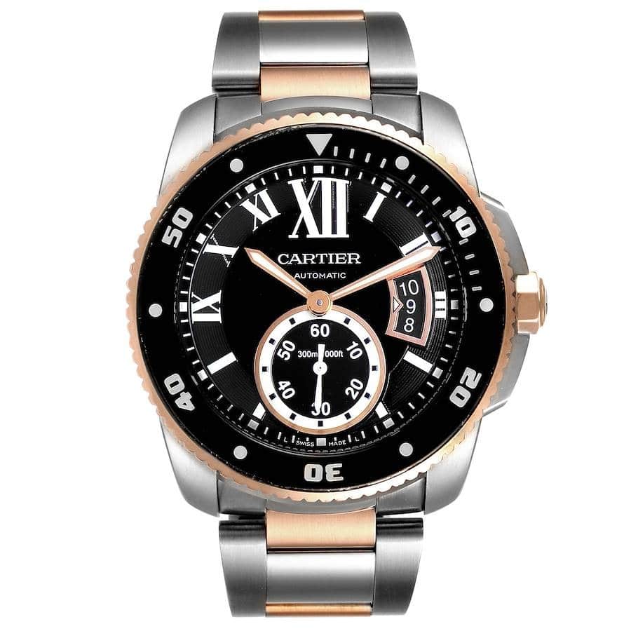 Cartier Calibre De Cartier Diver W700054 42mm 18kt Rose Gold/Stainless Steel with Black Dial Watch 2018