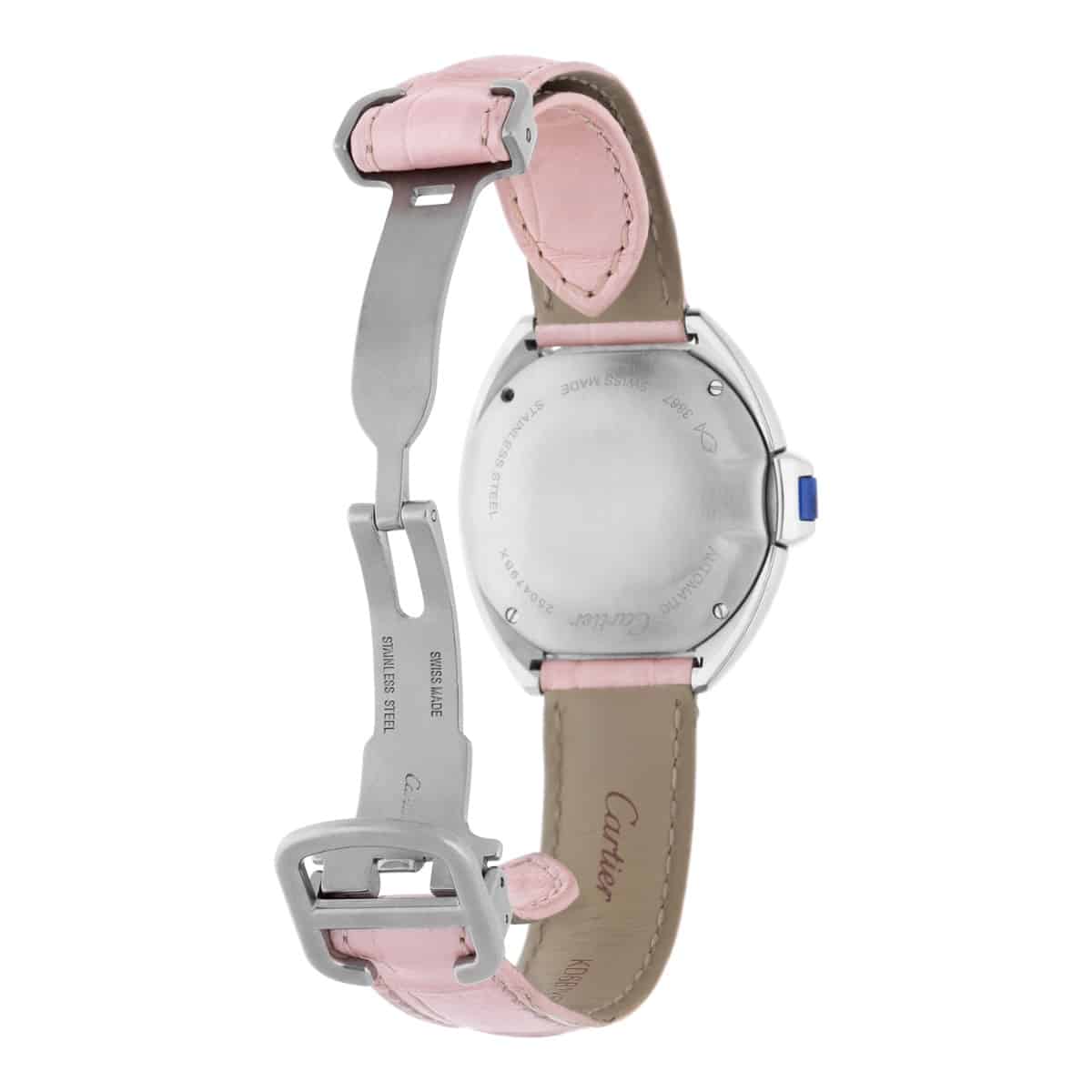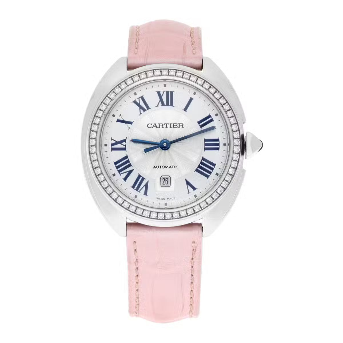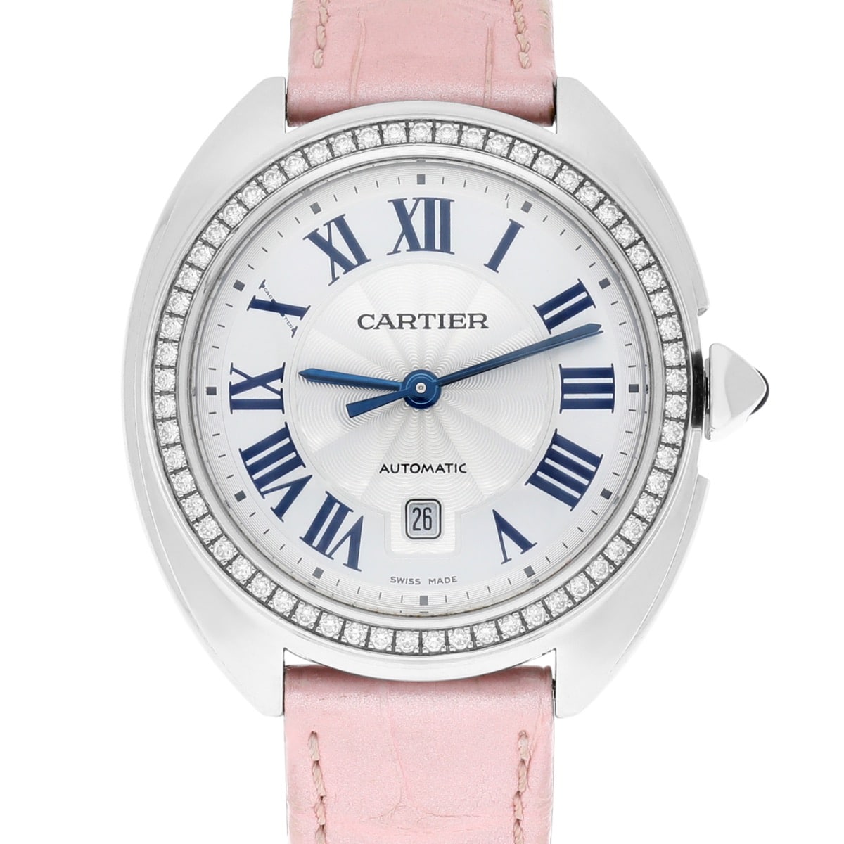 The watch features a meticulously crafted 31mm round stainless steel case, offering a perfect balance between classic and contemporary appeal. The solid case back ensures durability, while the screw-down crown provides added security and water resistance. The bezel, adorned with diamonds, adds an elegant sparkle, making this watch a true statement piece. The soft, curvaceous lines and iconic Clé de Cartier design offer a sense of modernity with timeless charm. Powered by a reliable automatic movement, this watch ensures accurate timekeeping.