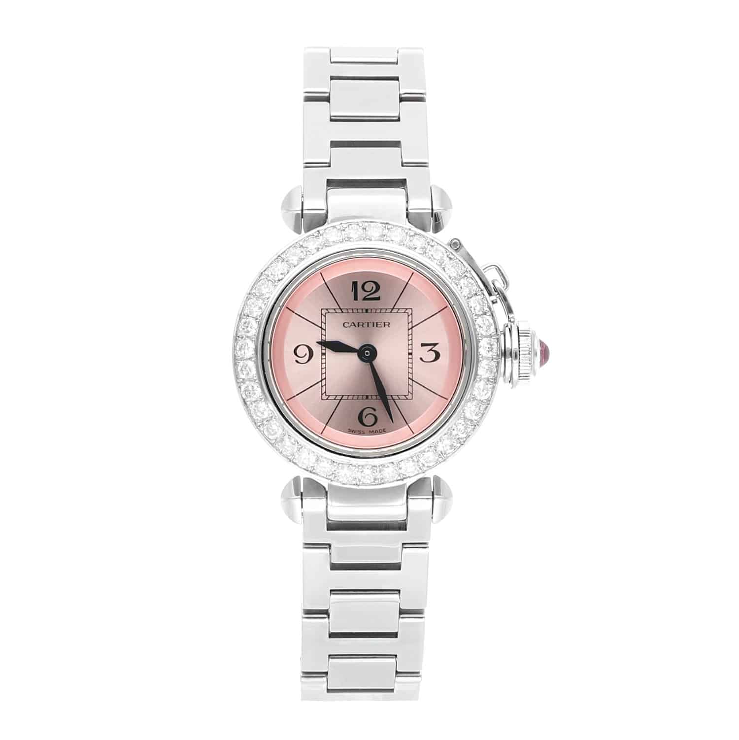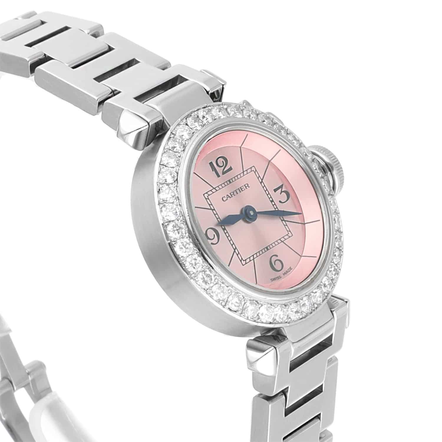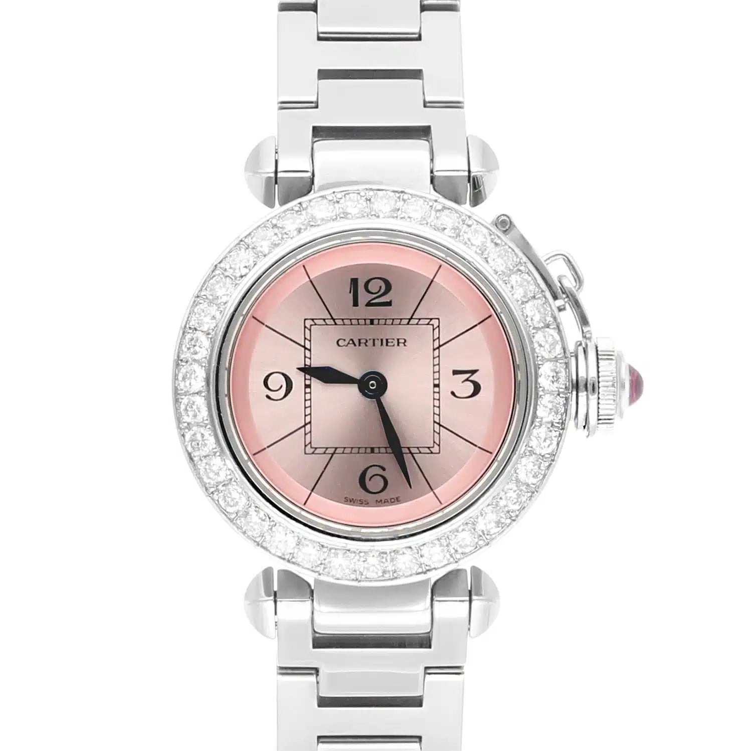 Cartier Miss Pasha Steel Pink Dial Ladies Watch W3140008 with Diamond Bezel