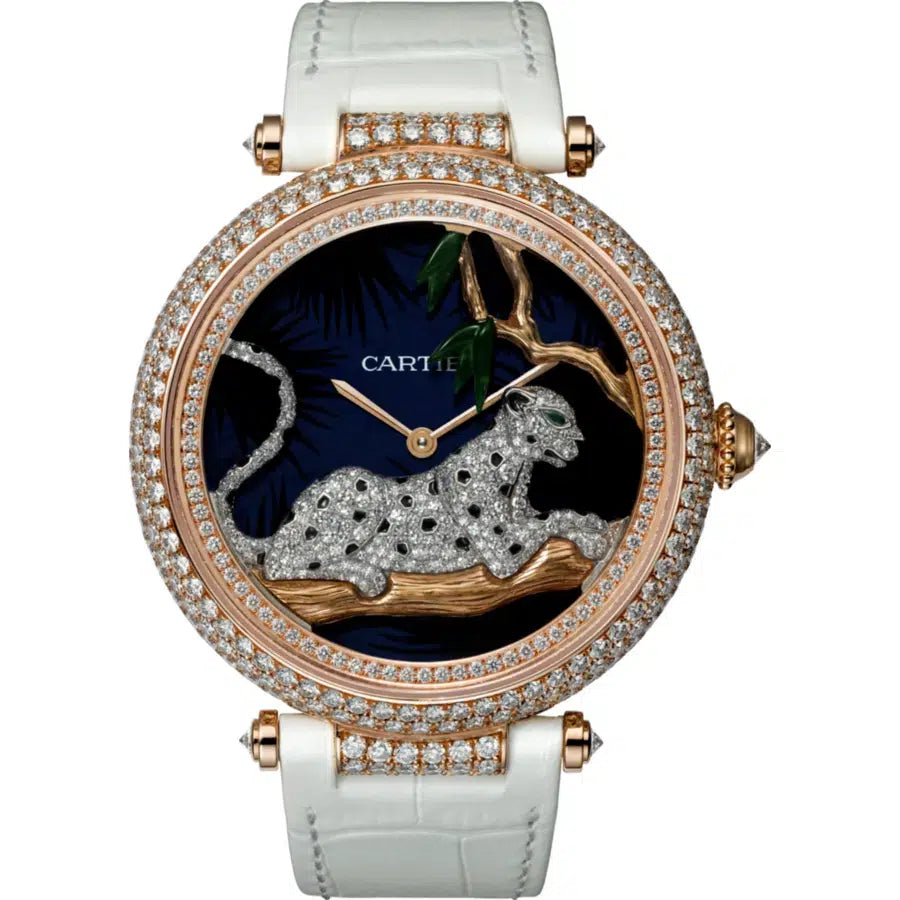 Cartier Panther Au Claire de Lune HPI00712 Rose Gold With White Leather Watch/Blue Dial 2024