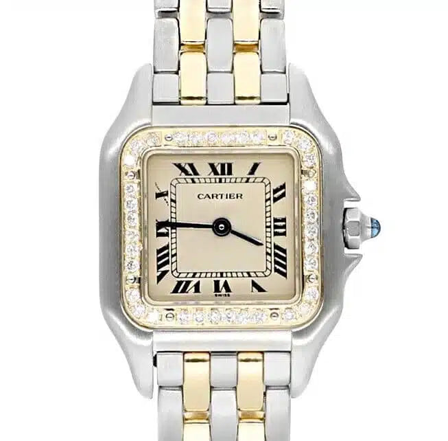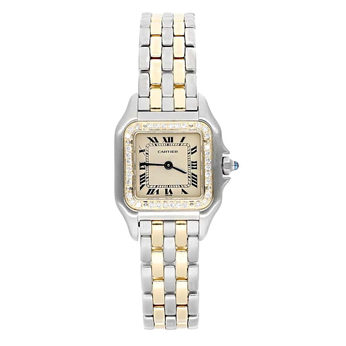 Cartier Panthère Steel Yellow Gold Two Row Bracelet Ladies Watch