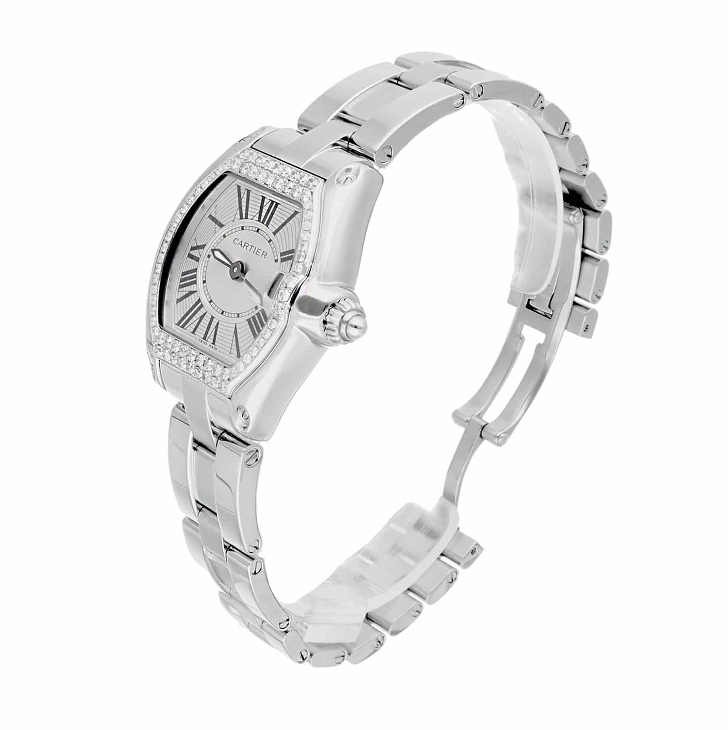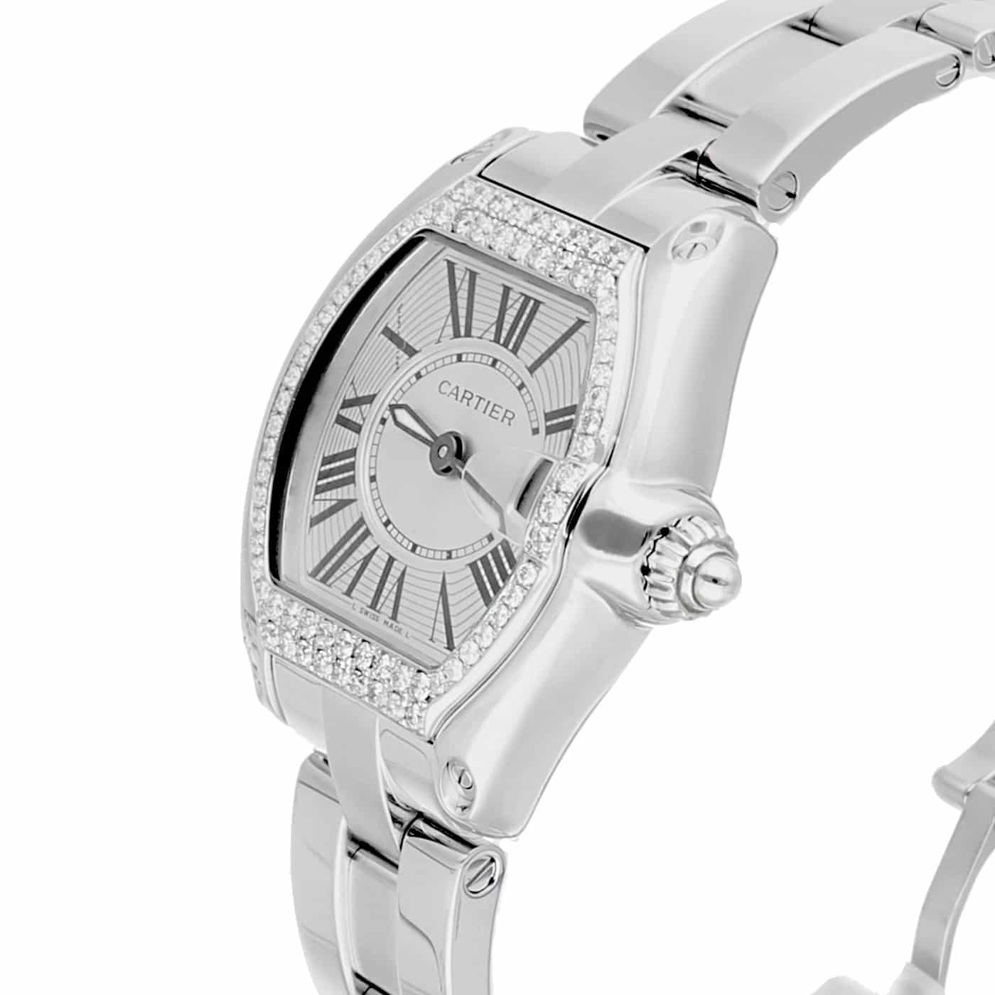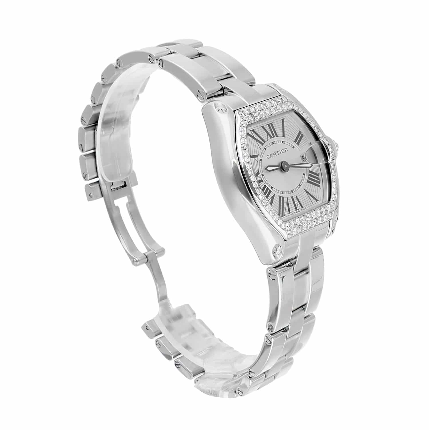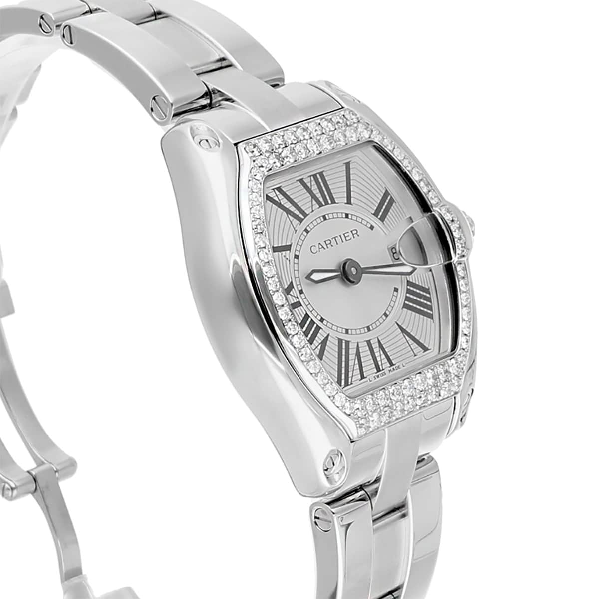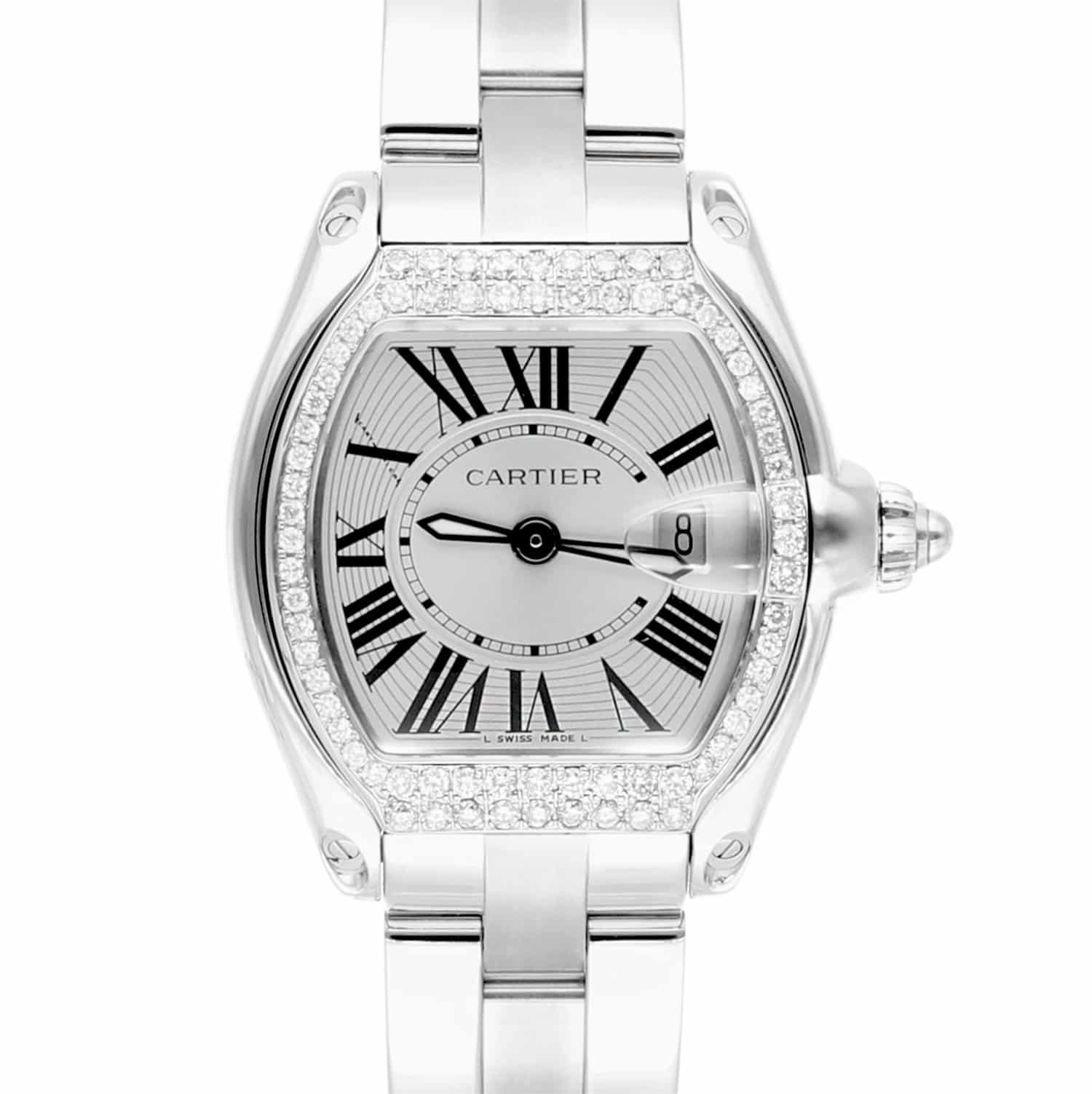 Cartier Roadster Ladies Silver Dial Stainless Steel Watch with Diamond Bezel W62016V3