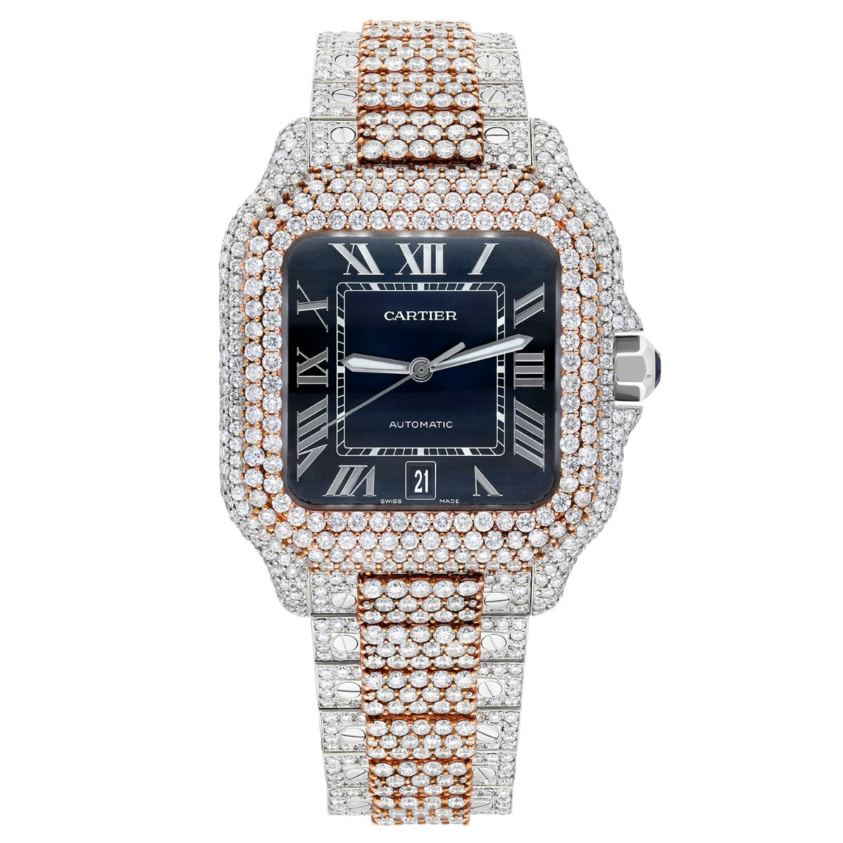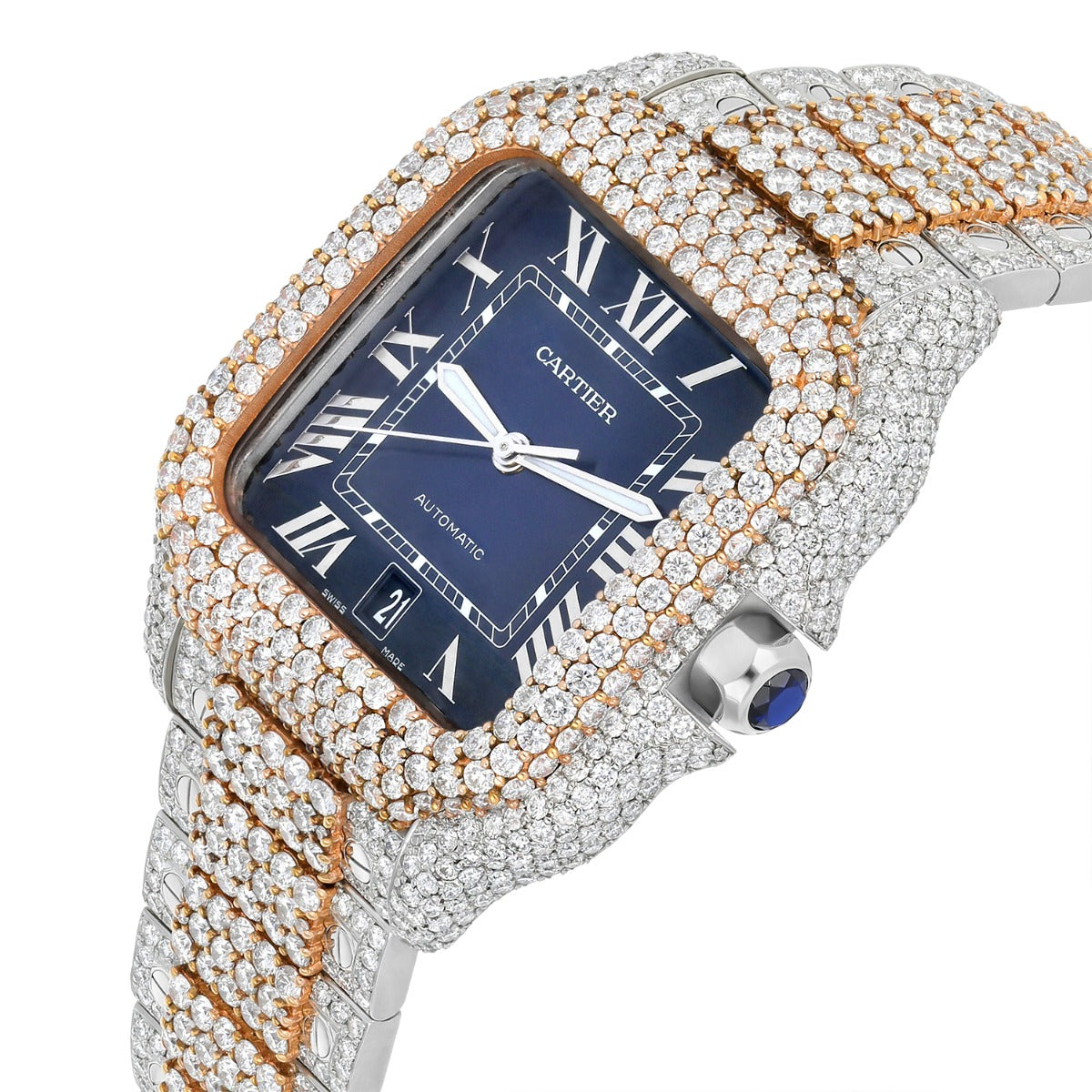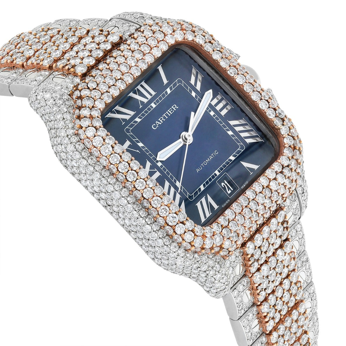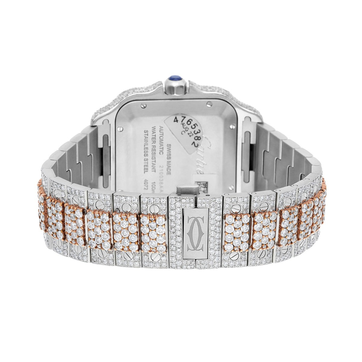 Cartier Santos De Cartier Custom Diamond Iced Out Stainless Steel and Rose Watch