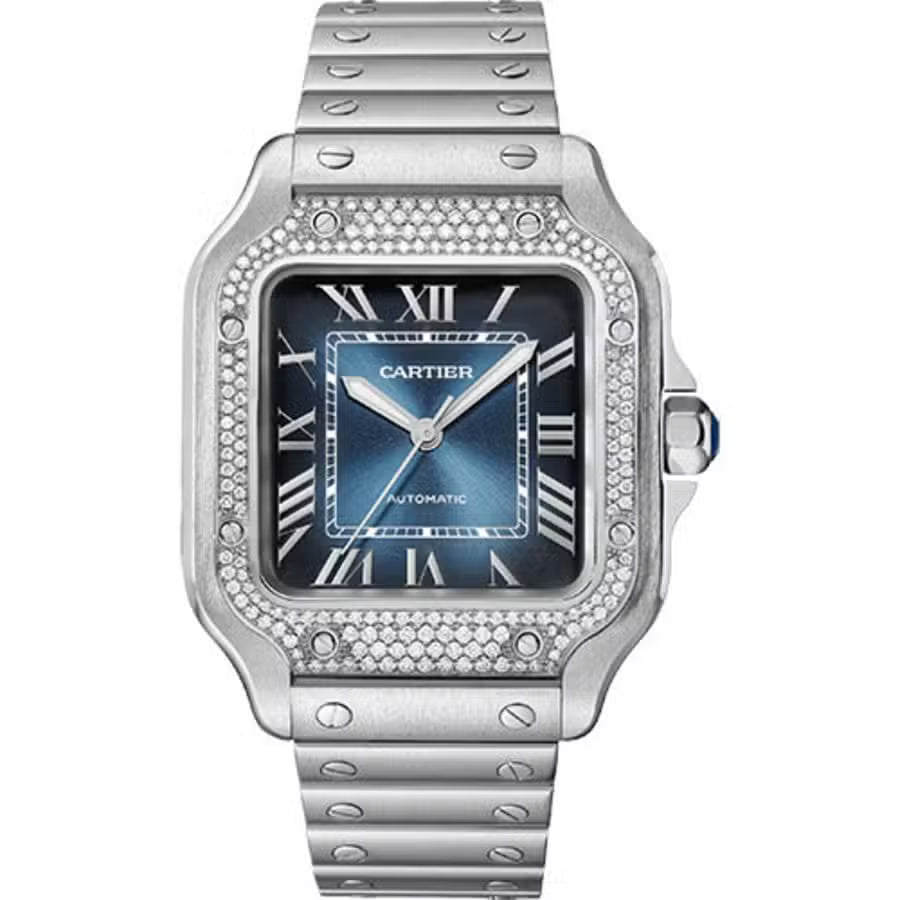Cartier Santos Medium 35mm W4SA0006 Automatic Stainless Steel Watch Blue Roman Dial 2024
