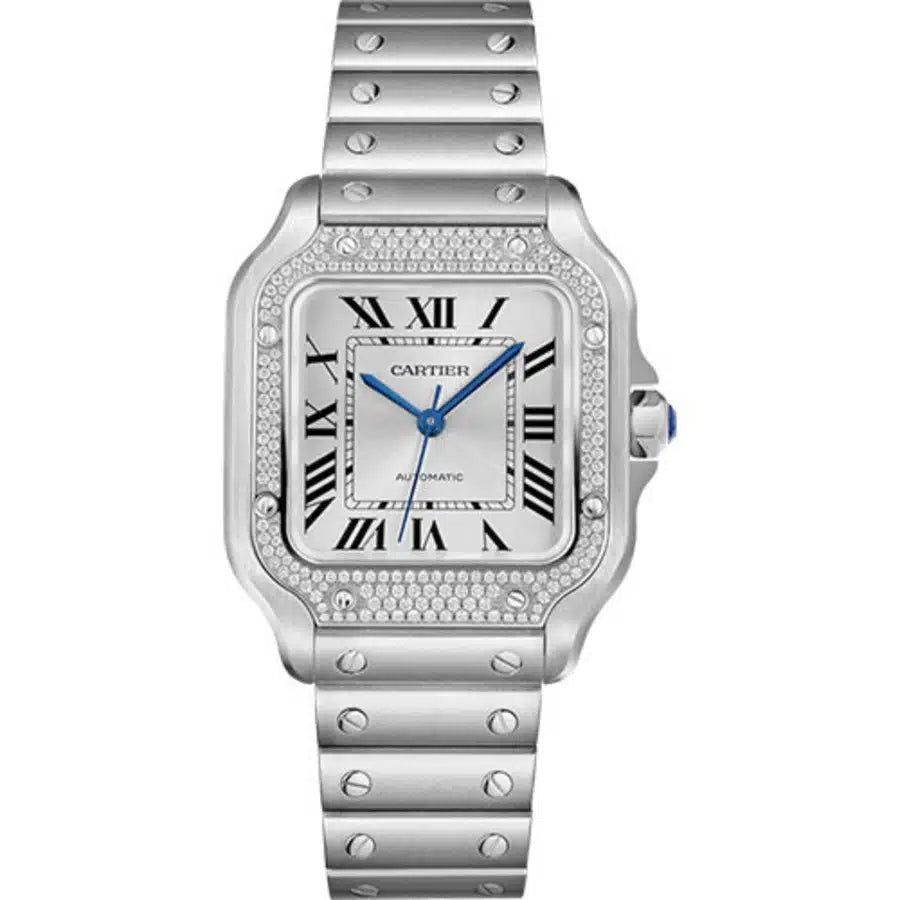 Cartier Santos W4SA0005 Diamond Bezel Stainless Steel Watch 35mm With Silver Dial 2024