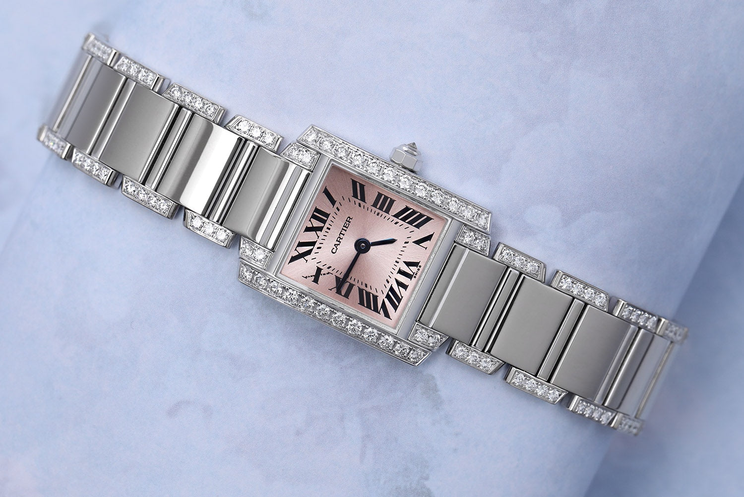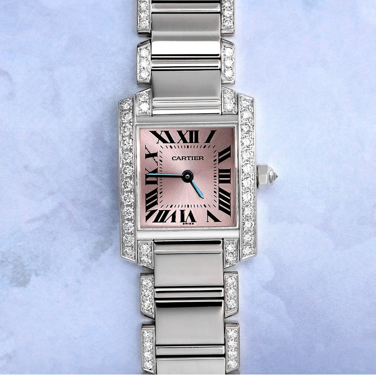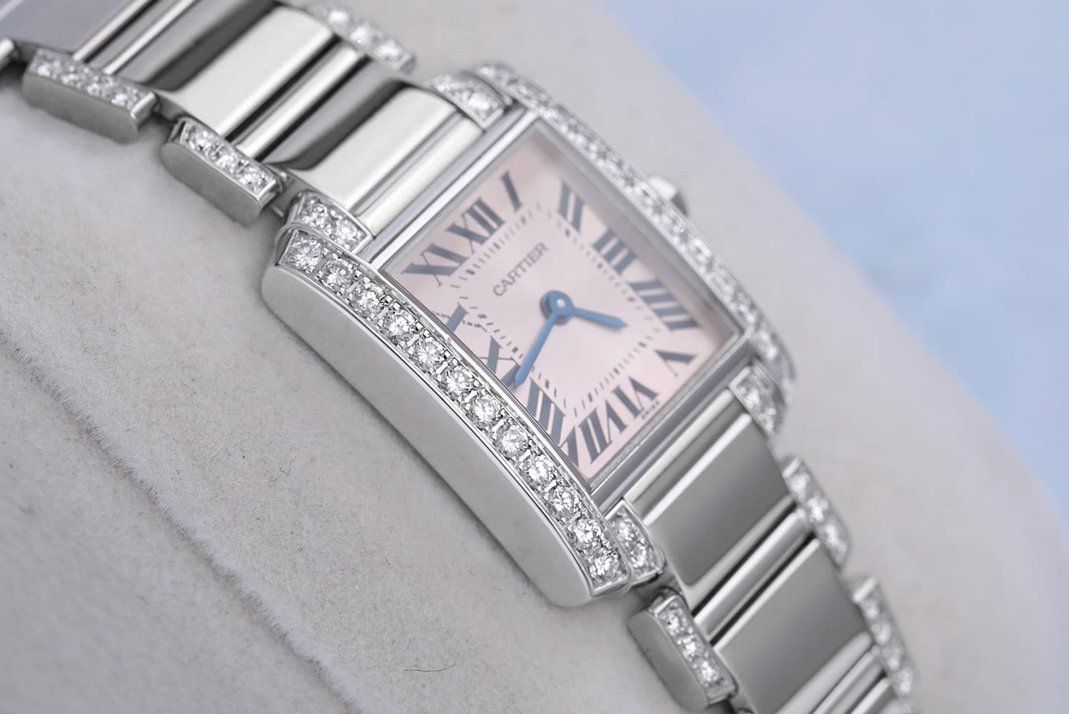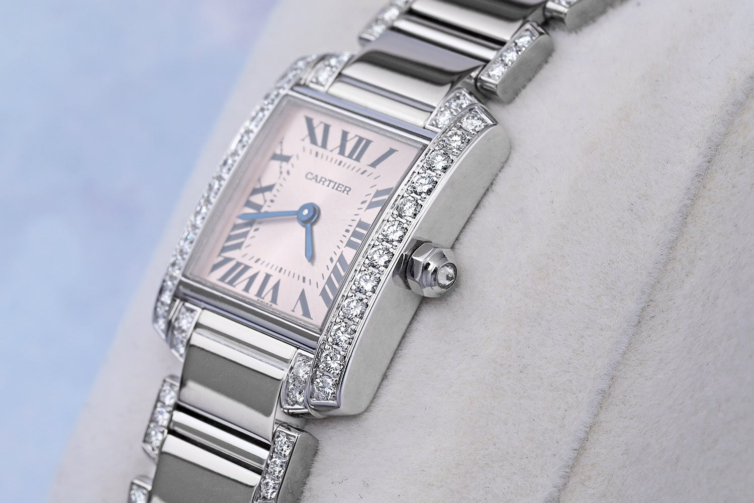 Cartier Tank Francaise Ladies 18k White Gold Watch with Factory Diamonds Pink Dial 2403