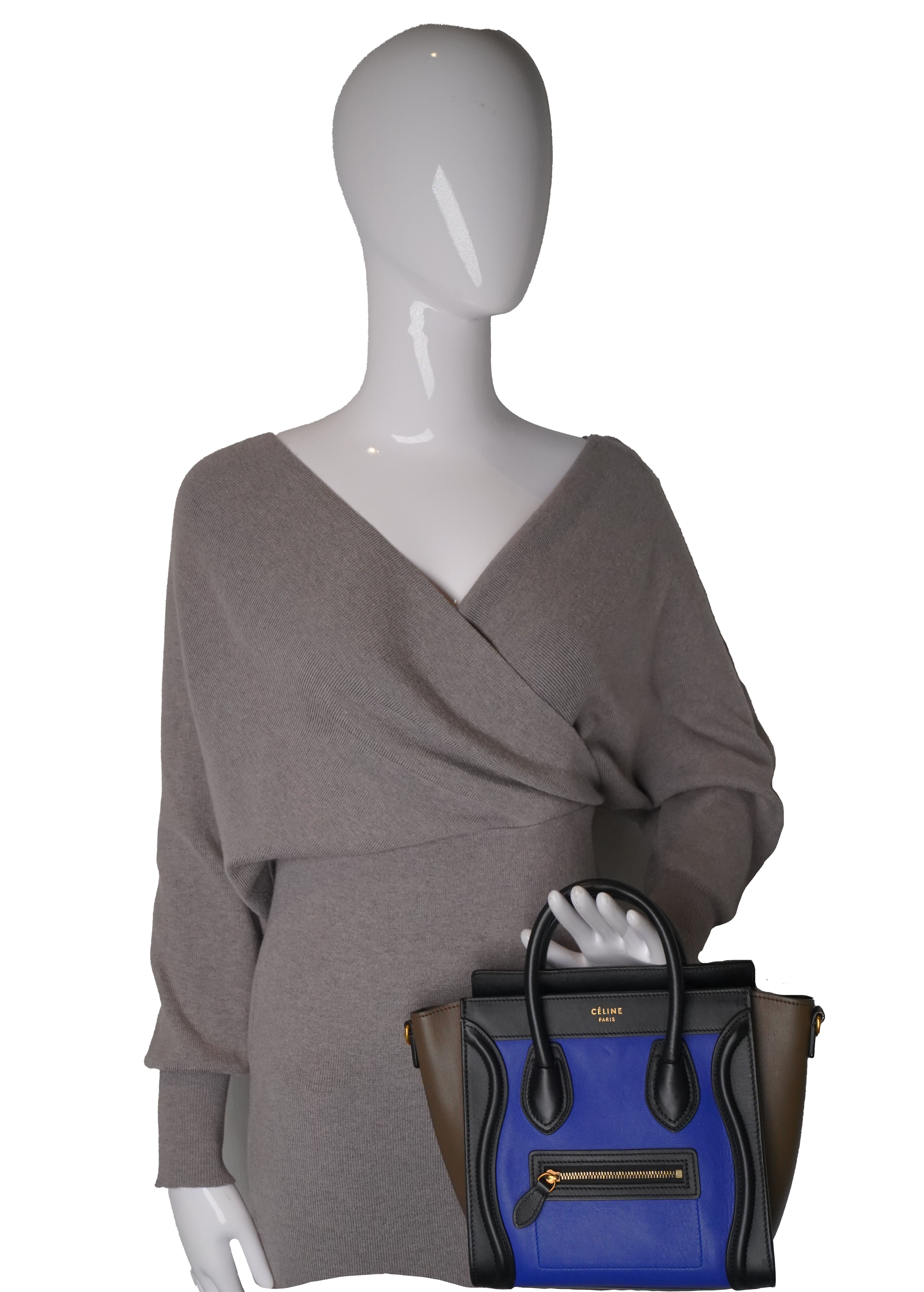 CÉLINE Elephant Calfskin Mini Tri-Color Luggage Indigo